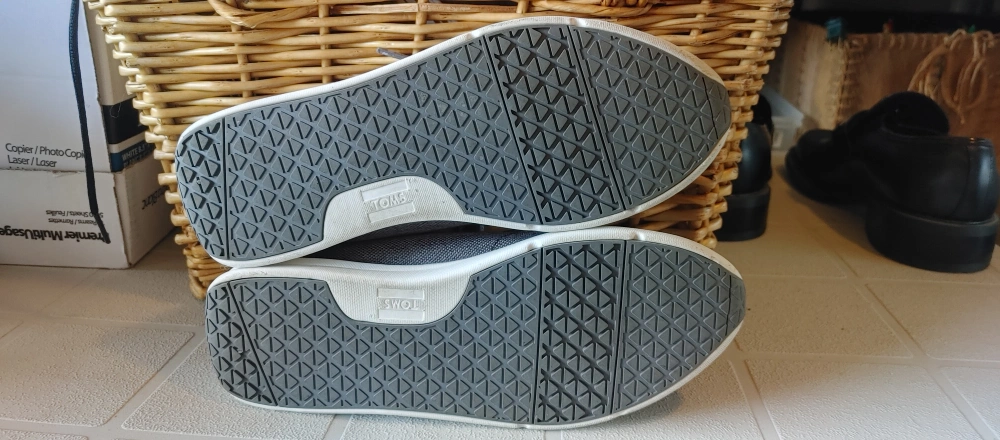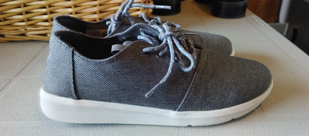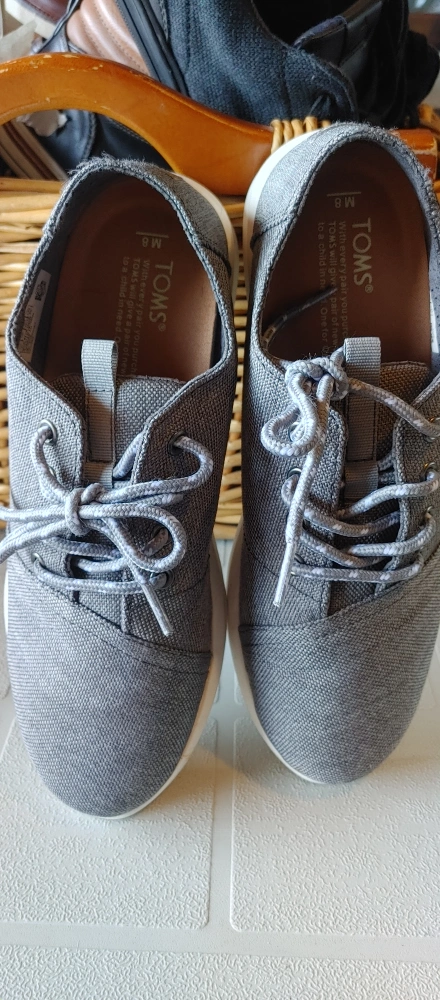 Selling a pair of TOMS men's sneakers in size 8. They're a stylish grey colour and in great condition. Perfect for everyday wear!