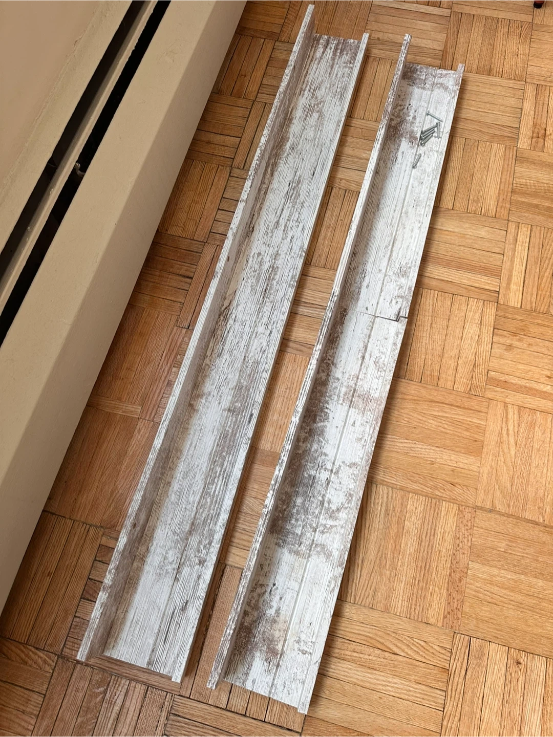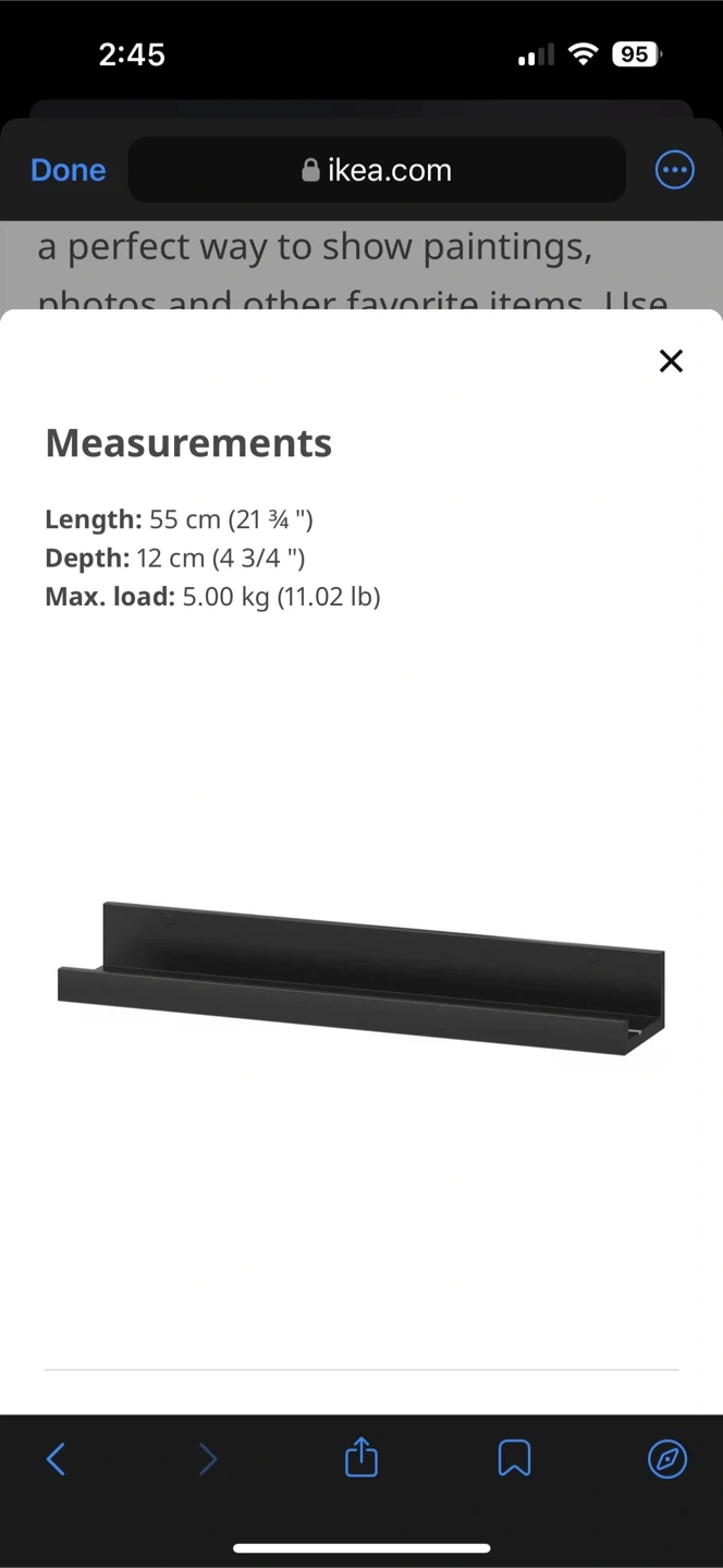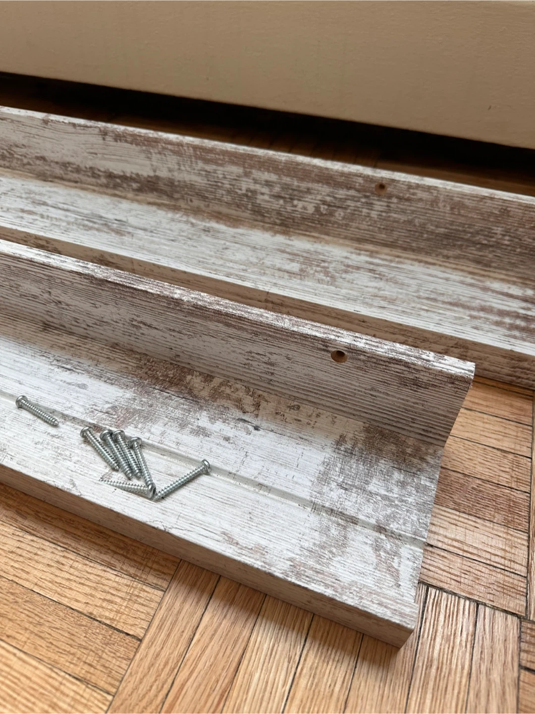 Selling a set of 3 Ikea Mosslanda picture ledges in a white, slightly rustic distressed wood finish. In great condition They're perfect for displaying photos, artwork, or small decorative items. Measurements are in the image. Selling all three together + giving screws for them as well! Pick up near Yonge and Bloor