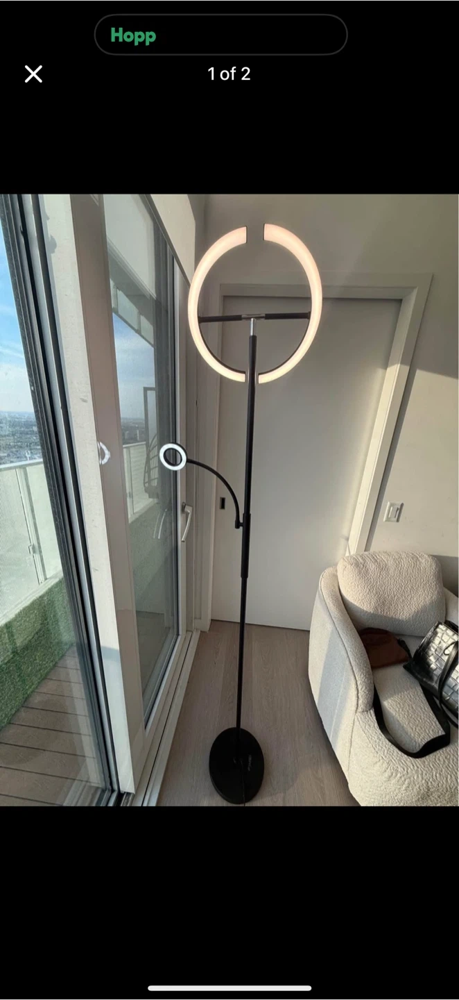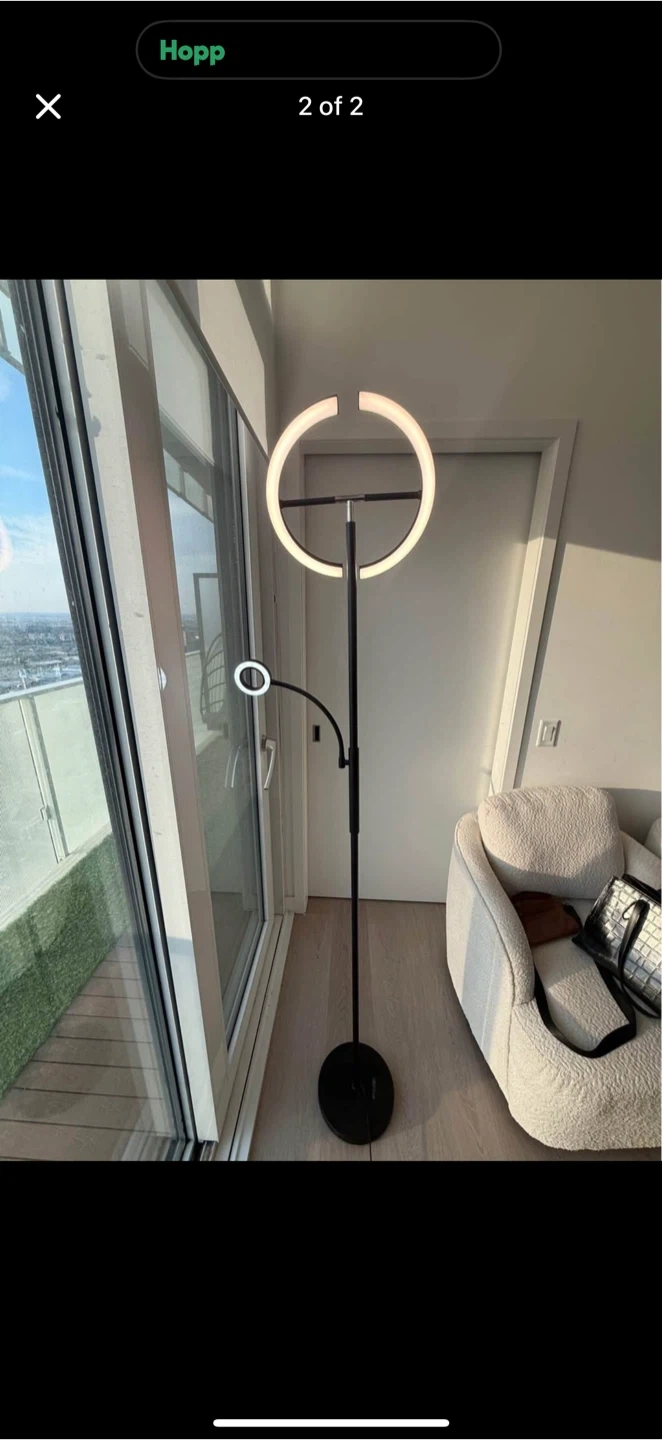 This LED ring light floor lamp is perfect for adding extra light to your space. It features a large ring light and a smaller spotlight for versatile lighting options. Great for makeup application, video calls, or just general illumination
