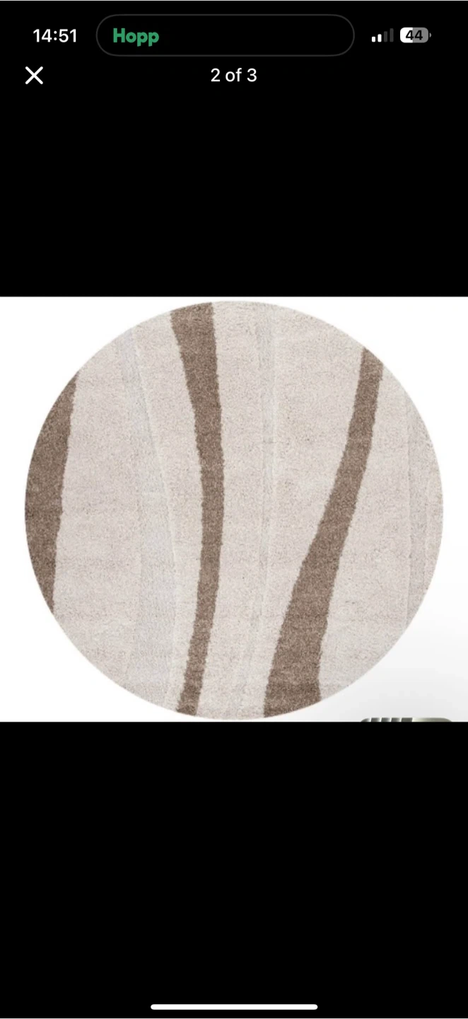 Selling a lovely round Hopp rug in beige and brown. It's in great shape and would look perfect in any room of your home! The rug features a stylish design with soft, shaggy texture, adding warmth and comfort to your space