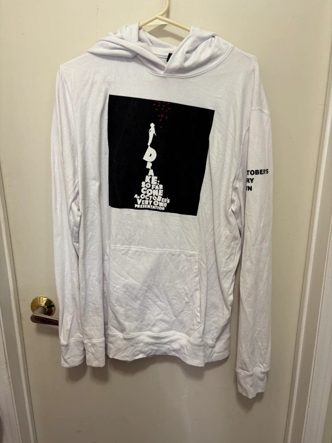 Selling a BRAND NEW WITHOUT TAGS, OVO (October's Very Own) hoodie in white. It's an extra large size. The hoodie features a design referencing Drake's 'So Far Gone' and other details on the back. It's made in Canada! Never worn. Kept in the closet, just don't reach for it. Payment: Cash Location: Rossland and Church, Ajax