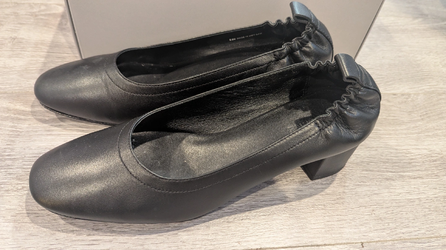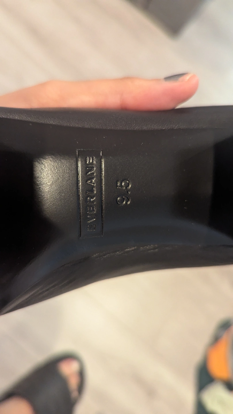 Selling a pair of Everlane black leather block heel pumps in size 9.5. These are in great condition and would be a stylish addition to your wardrobe! They feature a comfortable block heel and a classic design. Perfect for both casual and more dressed-up occasions