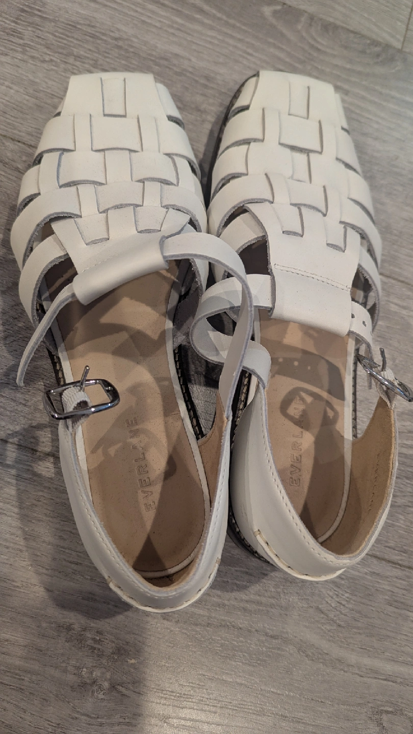 Selling a pair of Everlane woven leather sandals. They are in great condition and perfect for summer! They are white and a size 10.
