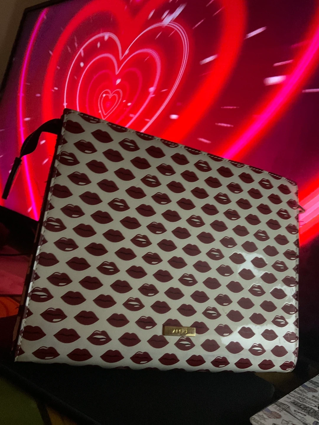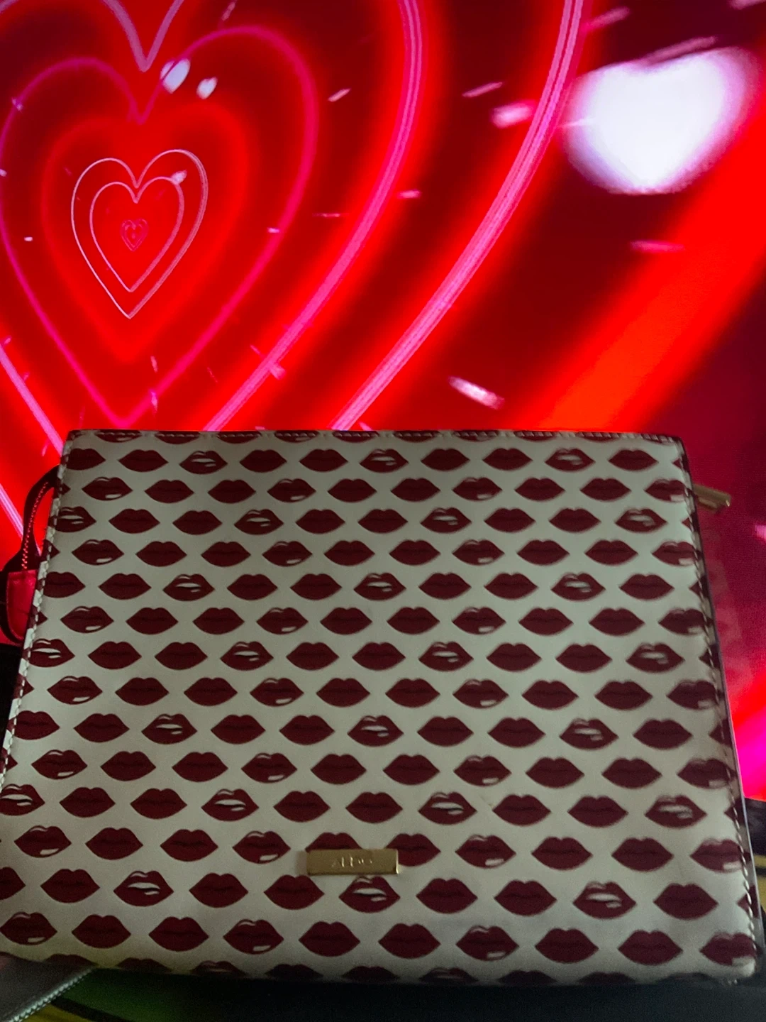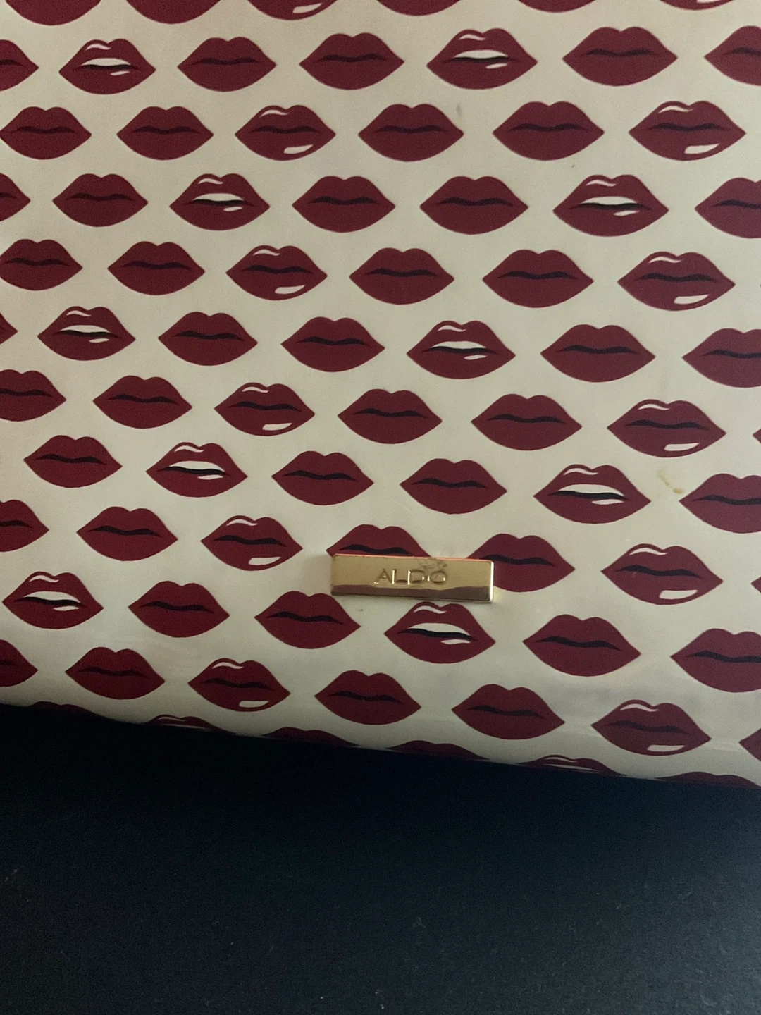 Here's an Aldo clutch with a fun lips pattern! It's perfect for adding a touch of whimsy to your outfit. The clutch is in great condition and ready for a new home. Originally brought for $73.