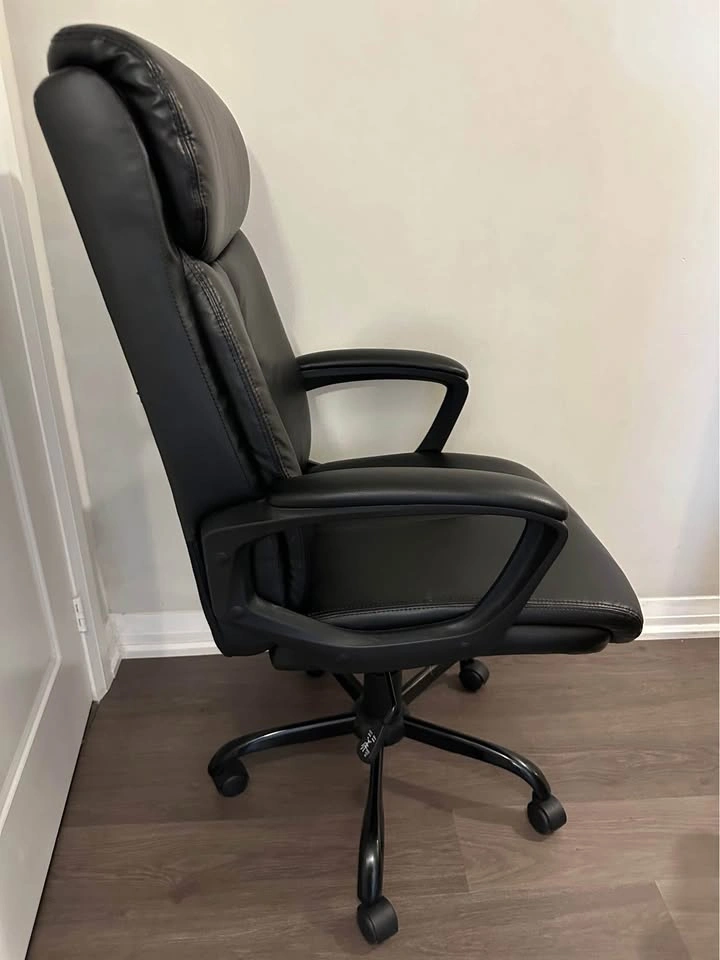 Selling a comfortable executive office chair in very good condition from a smoke-free, pet-free home. β PU leather finish β easy to clean β Adjustable height & reclining function β Swivel + wheels for smooth movement β Ergonomic design with lumbar support β perfect for long hours at desk π² Price: $30 π Pickup: Markham [Markham Rd/Edward Jeffreys Ave]