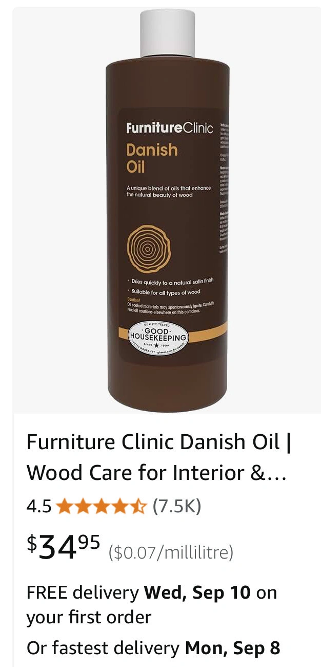 Furniture Clinic Danish Oil | Wood Care for Interior & Exterior Furniture | Restore, Seal & Protect Oak, Pine, Teak & More | Non-Toxic Natural Satin Finish | Repels Water, Stains, Dirt | 17oz/500ml For Sale By: Owner