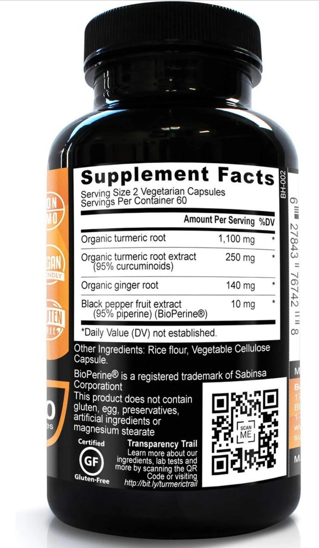 BE HERBAL Organic Turmeric Curcumin 1500mg with Black Pepper & Ginger - The Most Potent Certified Organic Turmeric Curcumin Supplement with 95% Curcuminoids - 120 Veg Capsules (120) For Sale By: Owner