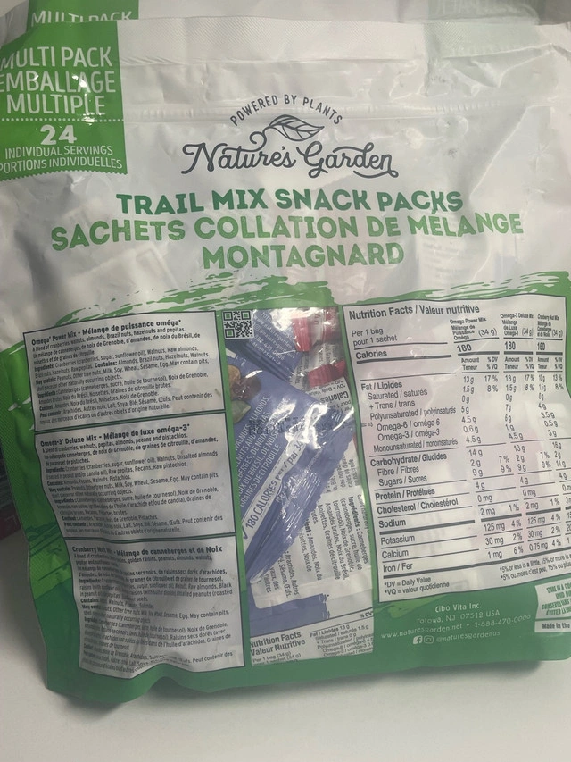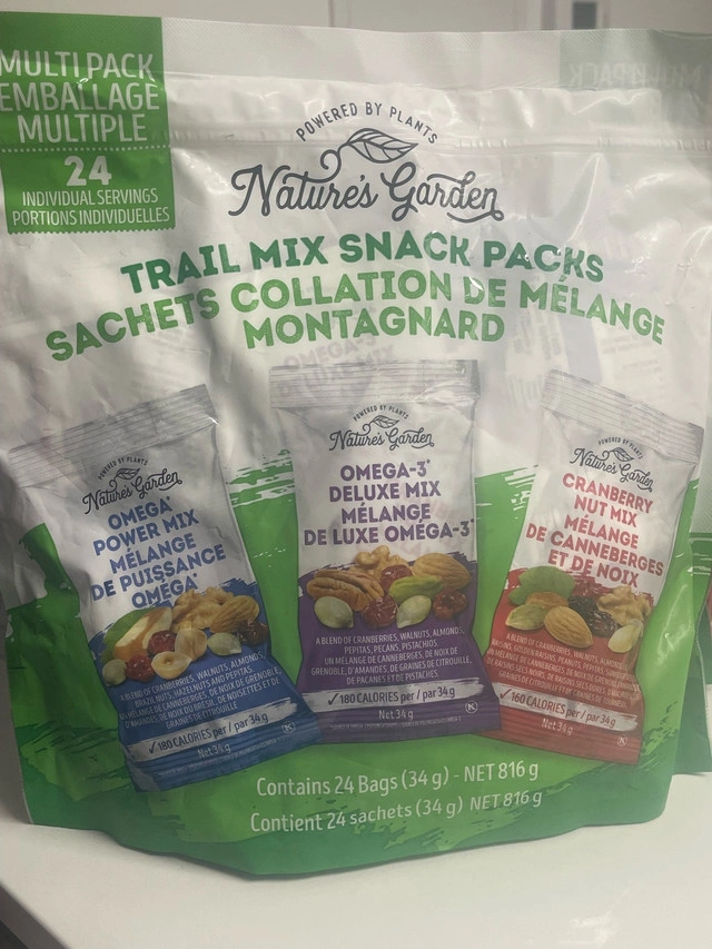 Nature's Garden Healthy Trail Mix Snack Packs, Mixed Nuts, Heart Healthy Nuts, Omega-3 Rich, Cranberries, Pumpkin Seeds, Perfect For The Entire Family – 816g Bag (24 Individual Packets) For Sale By: Owner