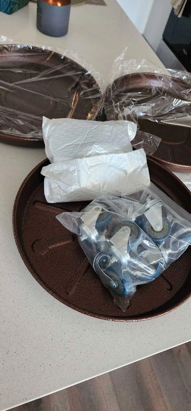 Brand new with wheels. 3 Trays for $90 2 Trays for $ $70 1 Tray for $ 40 - 14 Inches Heavy Duty Plant Stand with Support 440 Lbs Plants. - Indoor and Outdoor Flowerpot Tray (3pcs) (14, Matte Bronze). Pick it up in Oakville