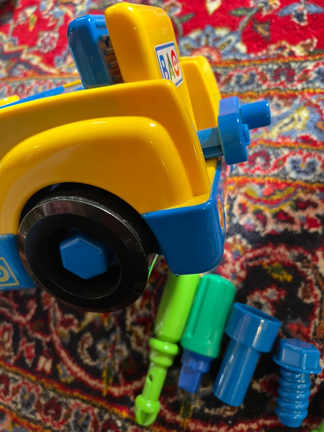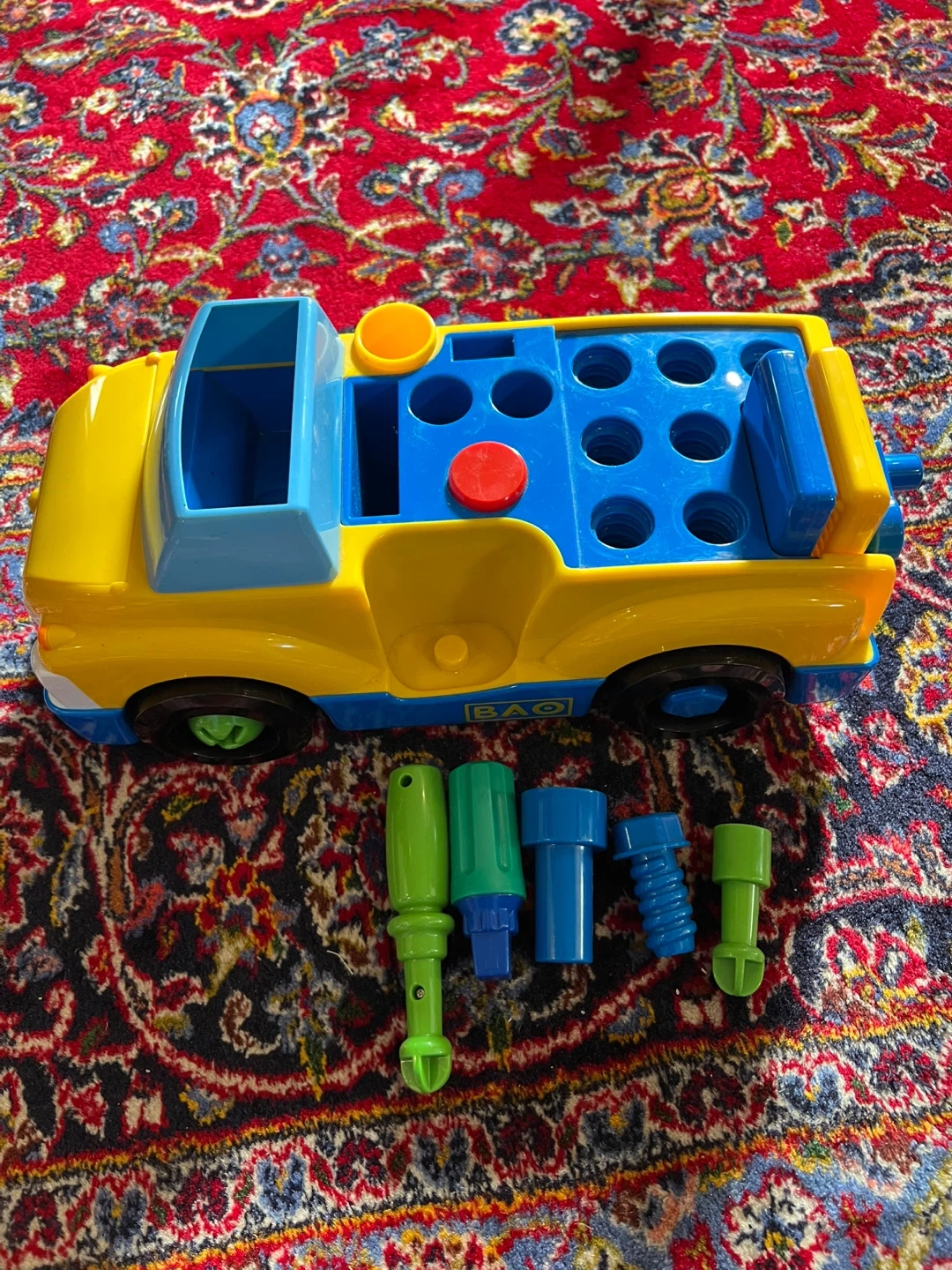 Selling a fun BAO toy truck! It comes with different coloured tools that fit into the truck. Great for kids who love to build and play!