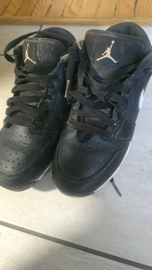 Selling a pair of Jordan Flight Runner 2 shoes in black. used but good condition KIDS Size 4 BASEBALL CLEATS.