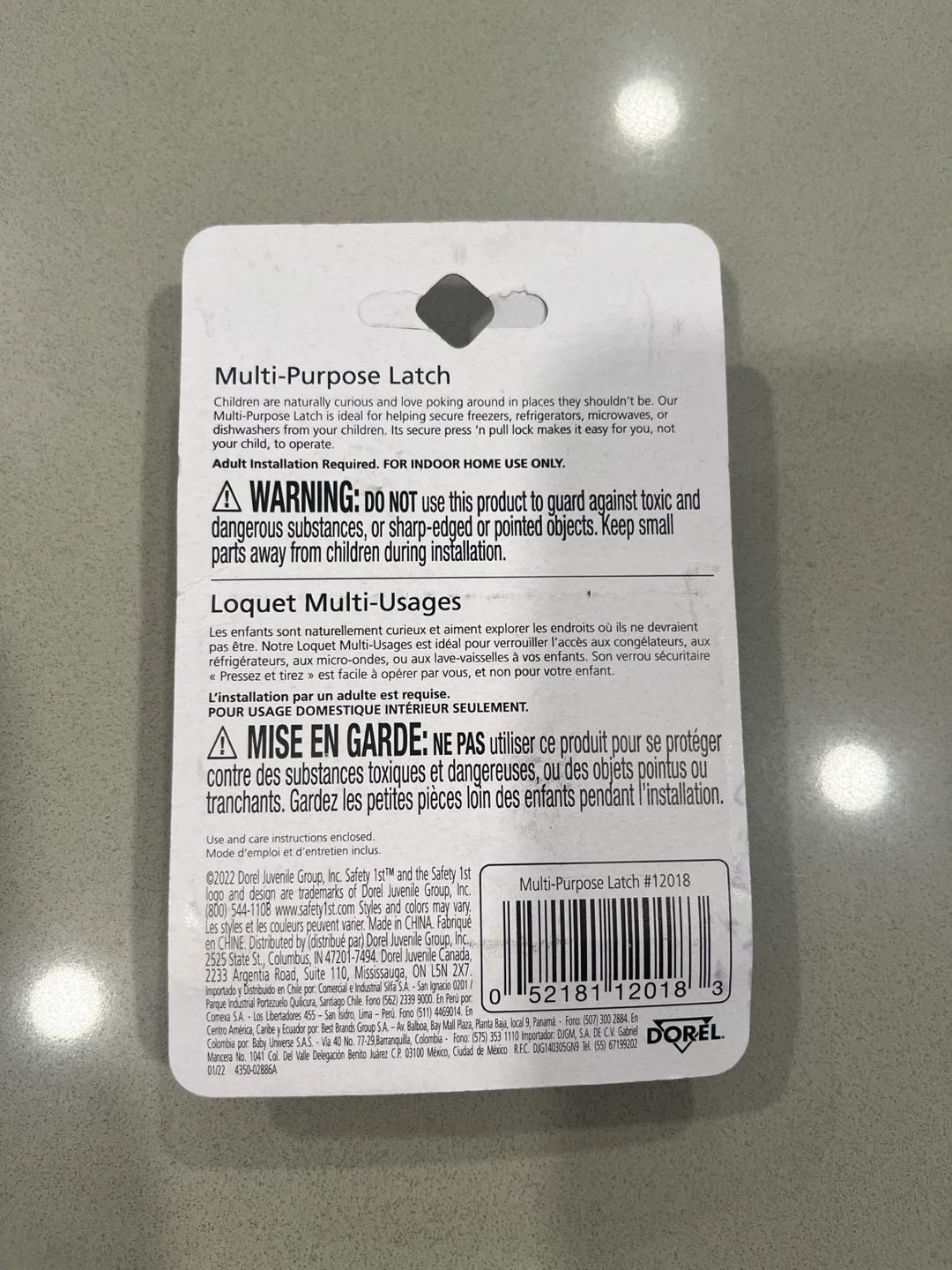 I have a brand new Safety 1st Multi-Purpose Latch for sale! It's perfect for keeping little ones out of cabinets, refrigerators, microwaves, or dishwashers. It's easy to install and use, with a secure 'n pull lock that makes it easy for you, but not for your child