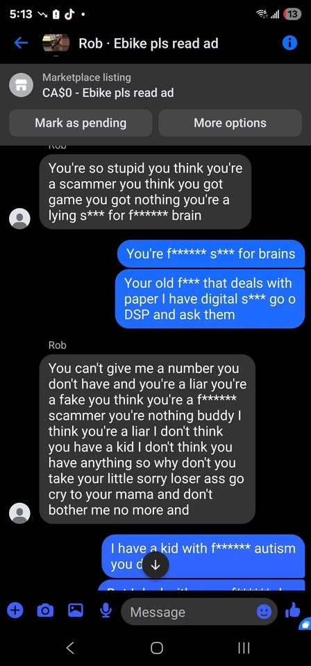 Looking for a bike that just needs batteries. Last year mine was stolen and I used it for everything and loved it. The pic is of my old bike and was look for same style. There have been multiple messages about people wanting to buy a bike ume not selling lol. Also there have been people that have been offering bikes to buy or to give. I cannot afford much that's why this ad is here and pls don't offer then ghost me or behave poorly when we speak (think I'm a scammer) then don't message said as nicely as possible please don't be like rob in the pictures insulting me and my family. I have enough things to go through daily and don't need that please. Thank you