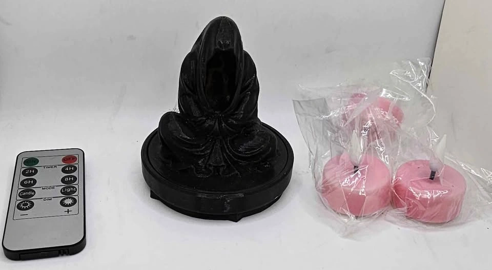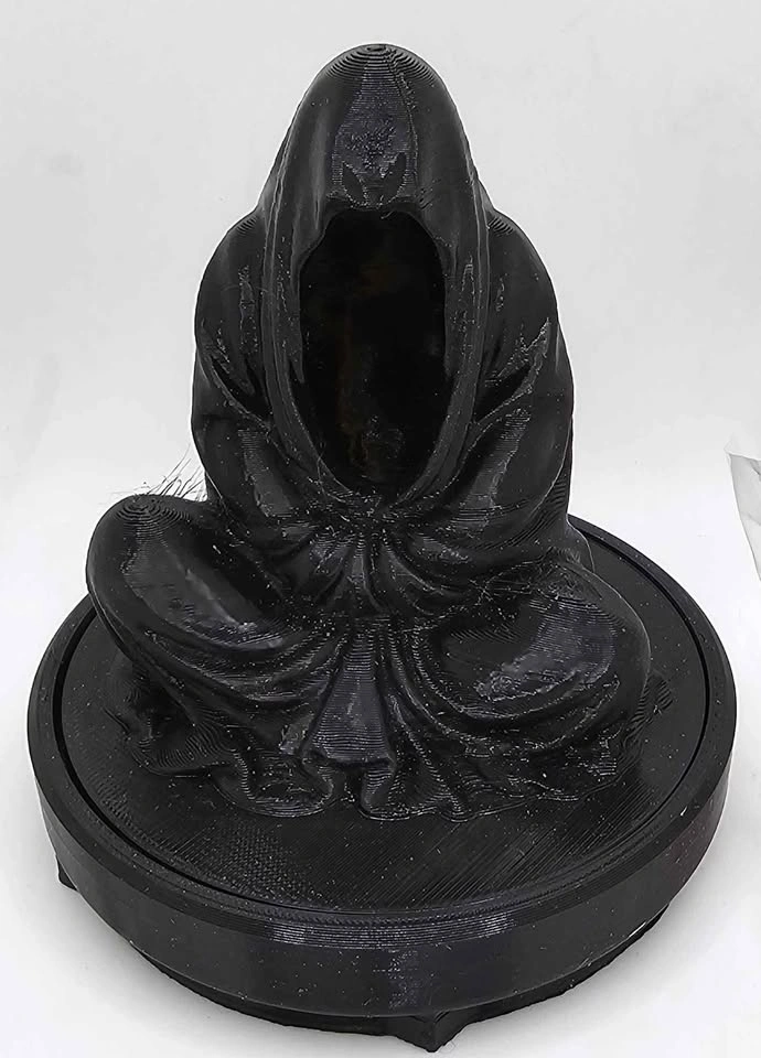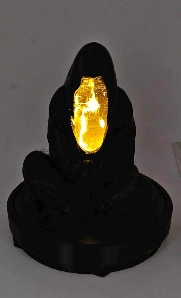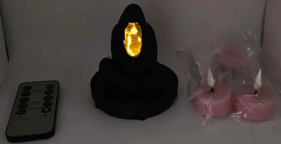 3d printed grim reaper in black. Has a few led candles with it which are remotely operated and flicker like a real candle