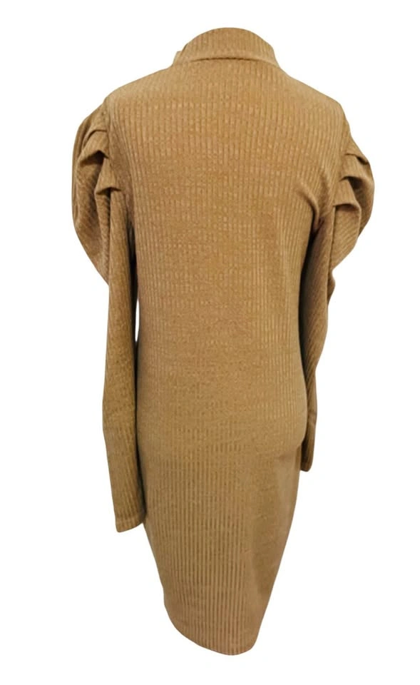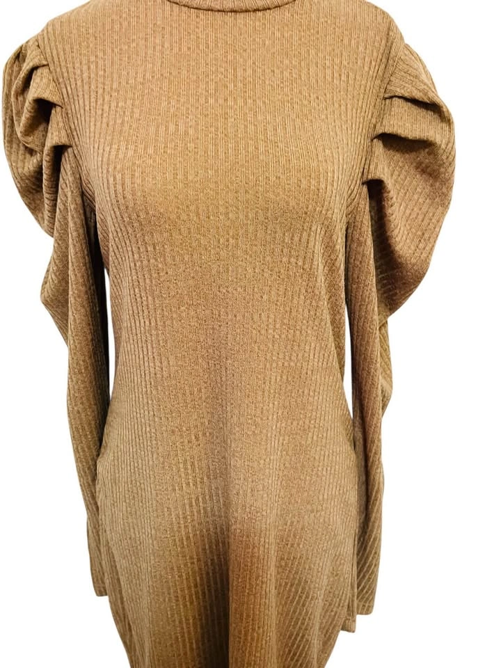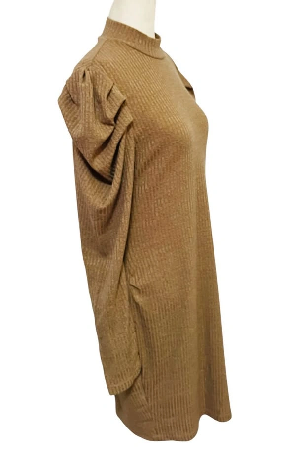 Embrace effortless chic with this bodycon dress. A mock neckline adds a touch of sophistication, while the long sleeves and mini length balance coverage with a playful vibe. The standout feature is undoubtedly the gathered puff shoulders that create a dramatic silhouette. This dress hugs your curves in all the right places for a flattering look that transitions easily from day to night. Perfect for brunch with friends, a casual date, or adding a bit of glam to your everyday errands. Style: Sweater Dress, Mini, Bodycon Dress Length: Short Color: Beige Department: Women Sleeve Length: Long Sleeve Pattern: Solid Occasion: Casual, Party/Cocktail Material: Acrylic, Polyester, Spandex, Knit Neckline: Mock Neck Character: Chic, Glam, Date Night, Casual, Modern Fabric Type: Knit Season: Fall, Winter Good condition Women’s large Will fit an XL as well PU Ottawa & Strasburg, Kitchener