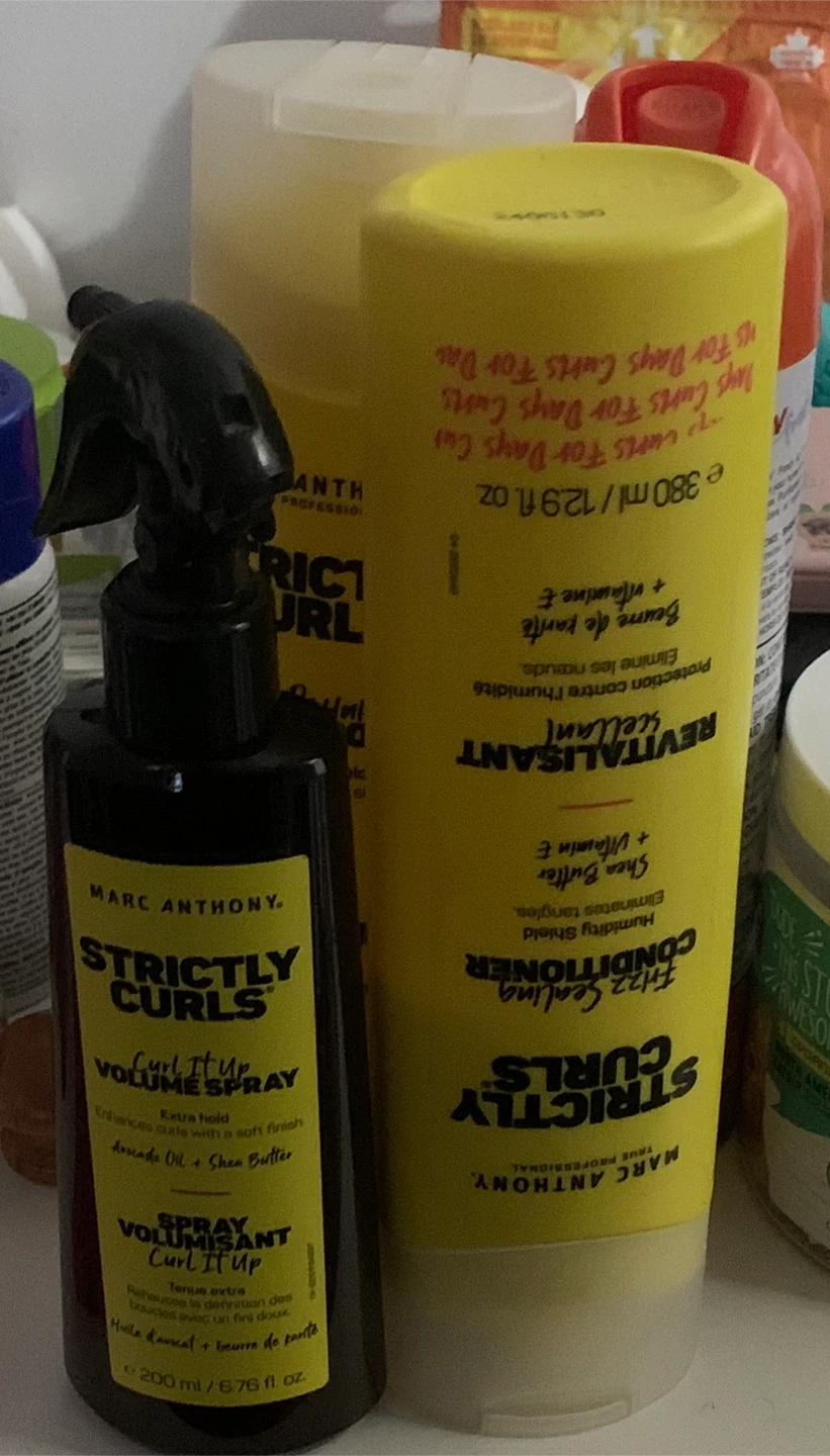 Marc Anthony products for curly hair. Half used, so they're half empty/full. Price includes shampoo, conditioner and volume spray. Pickup, or Meetup at Dundas West station! Comes from smoke-free household. E-transfer or cash. Thanks for reading! <3