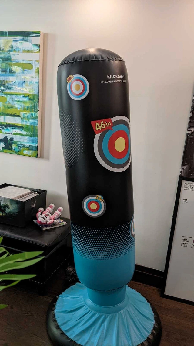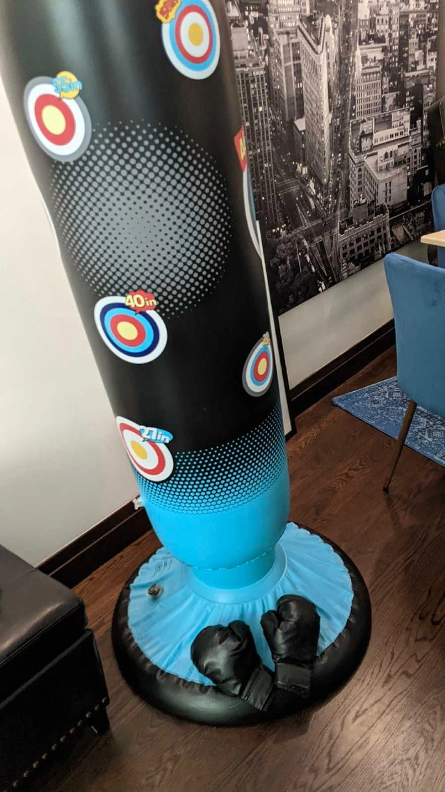 Gently used child's boxing bag, great for indoor or outdoor use! We've only had ours indoors exclusively so it is in pristine condition. Boxing gloves included! Dundas & University