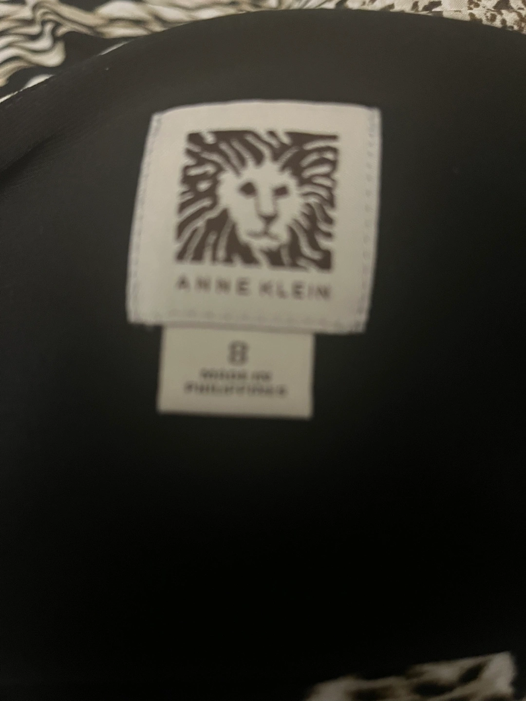 This is a lovely Anne Klein dress in size 8. It features a unique snakeskin and striped pattern with inner.It's in great condition and ready for a new home