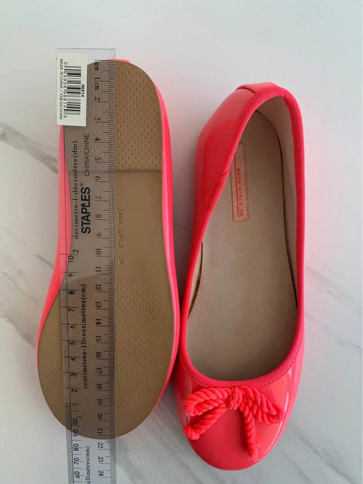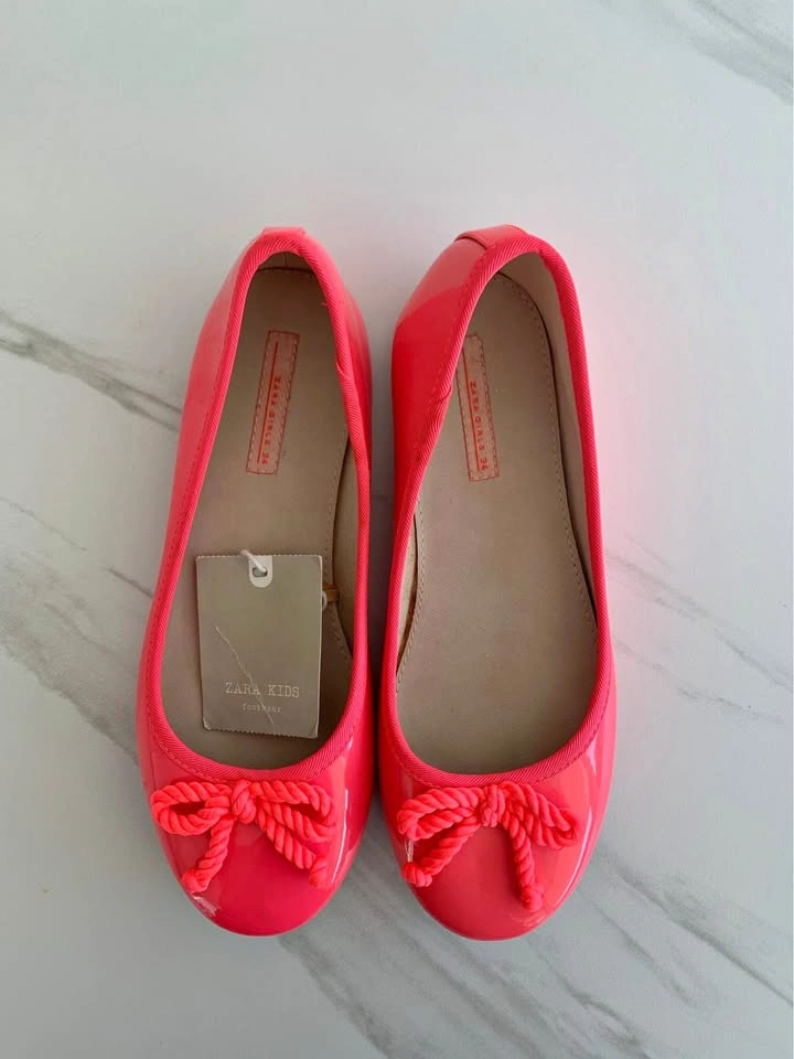 π Zara Girls Brand New Flats β Size EU 34 Condition: Brand new, never worn, with original tag Brand: Zara Kids / Zara Girls Size: EU 34 / 22CM Color: Glossy / bright pink (neon / vivid shade) with decorative bow detail Style: Ballet flat / slip-on flat π Location: Port Moody , Suture Brook π΅ Price: $25 CAD π· Additional Details: * Perfect for girls, special occasions, or casual wear * Very comfortable and stylish * EU size 34 is approximately equivalent to youth size 2β3 in Canada