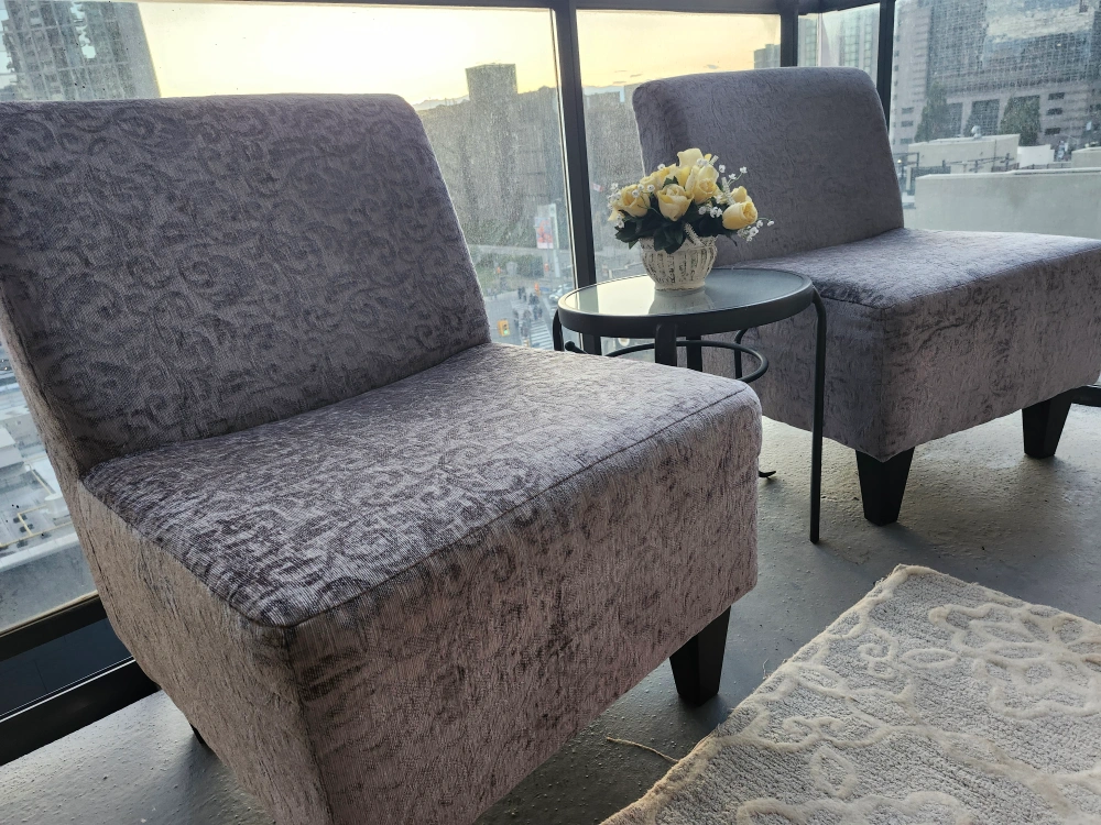 Selling a pair of comfy grey accent chair! It's in great shape and would look lovely in any living room or bedroom. $200 pair $110 each moving Sale Near Yonge and Sheppard