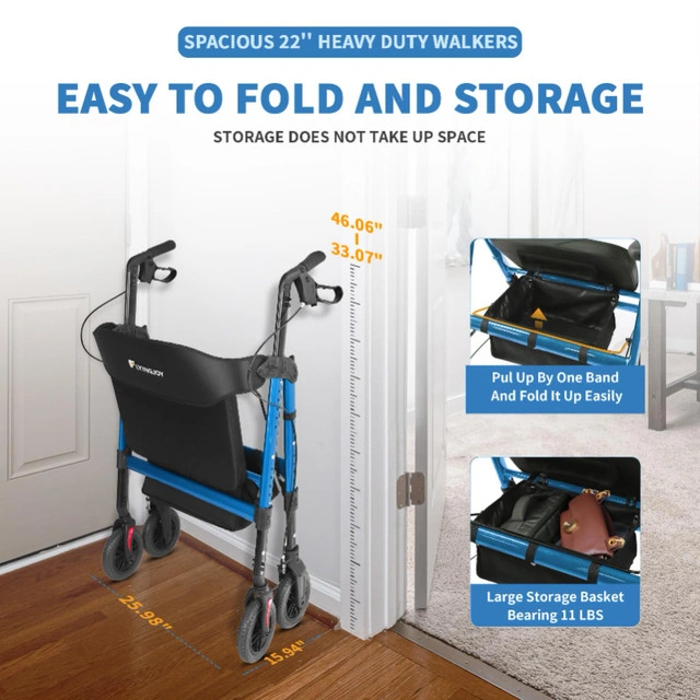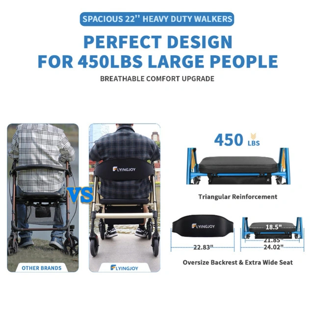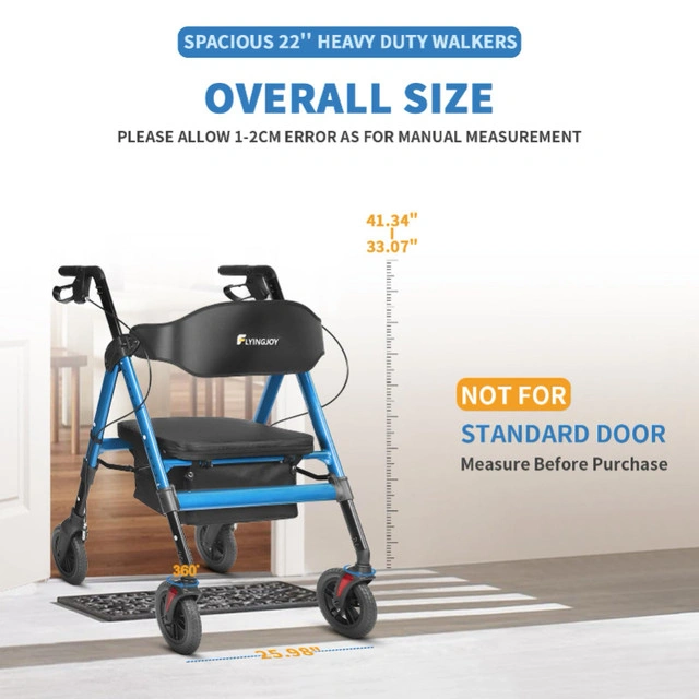 Brand New Rollator Walker. Comes in original box with all manufacturer parts. NOT for Standard Door 26" Wide, a bit Bulky for Lightweight Elderly. Retails at Amazon for $540 ($478 + tax). Save your money. Pickup from south London. FlyingJoy Heavy Duty Rollator Walker for 450 lbs Large People, 4-Wheels Folding Rolling Walker with Extra Spacious Seat, NOT for Standard Door 26" Wide, a bit Bulky for Lightweight Elderly (Blue) Details: Brand: FlyingJoy Colour: Blue Item weight: 10.5 Kilograms Maximum height: 41.49 Inches Is foldable: Yes Manufacturer: FlyingJoy COMFORT HEAVY DUTY ROLLATOR WALKER: The Rolling walker features a aluminum frame to support up to 450 lbs.You can flip the backrest to sit and rest, and the seat and backrest is made of soft polyester,it's durable and comfortable. It's friendly to your waist and hips.Please lock the brakes when seated. ADJUSTABLE SIZE: Flyingjoy folding rollator walker has 8 levels height to customize your suitable height of tubing handgrip and seat.The adjustable handles height is 33.27''-41.49'';Seat height is 19.48''-23.03''.After each adjustment,make sure that the height adjustment holes are at the same height, and confirm the knob has locked the tubing handgrip. ALL TERRAIN AIRLESS TIRES: The seniors rollator walker features 8 inch airless tires has shock absorption function,it suitable for indoor and outdoor.It can through uneven roads better and reduce bumps.Make you more comfortable during use. EASILY FOLDS AND STORAGE: Flyingjoy rollator walker is easily fold for convenient transport and storage.Just lift up the seat and then pull up the folding lever to fold the rollator.Also you can lift up seat to use storage bag. NOTICE: The rollator walker is used to assist walking, and people CANNOT push it when sitting on it ! No tools required when you assemble and disassemble rolling chair.Please strictly follow the instructions!