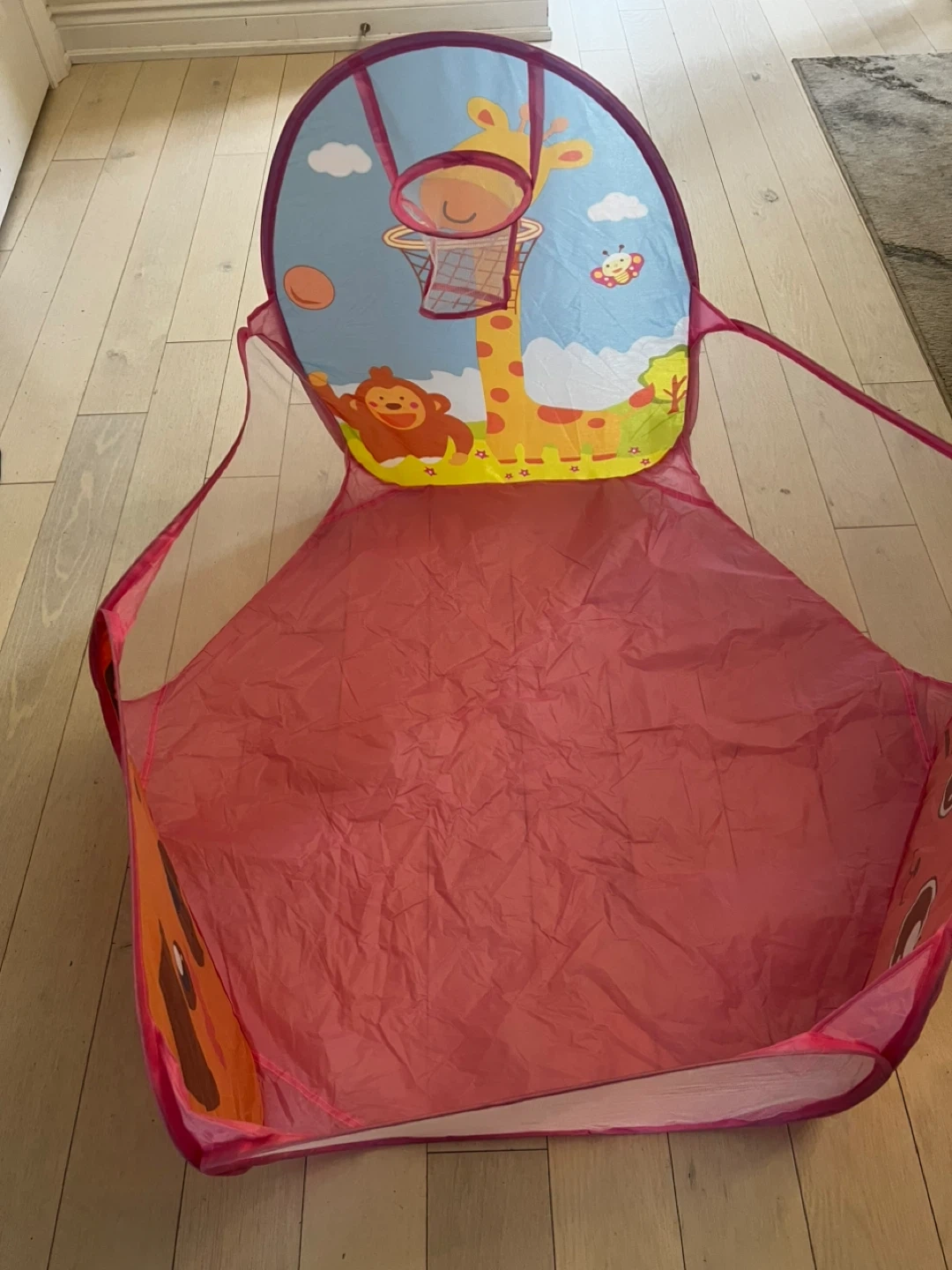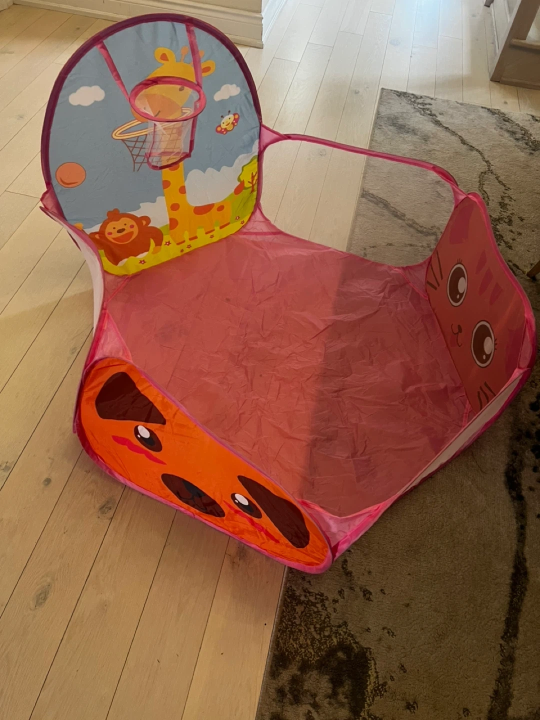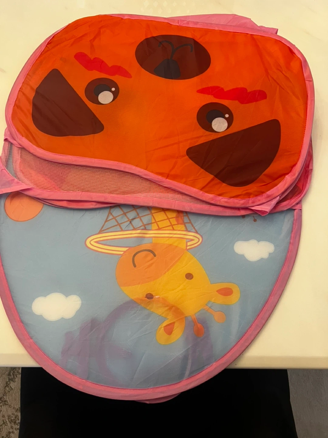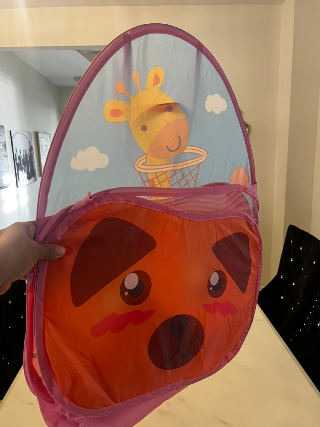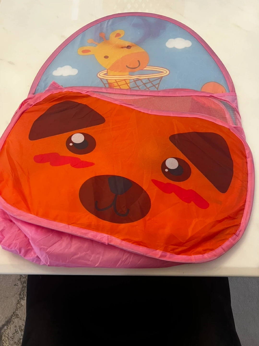 This cute pop-up play tent is perfect for kids! It features fun animal designs like a giraffe and a dog. It's in great shape and ready for a new home for playtime adventures