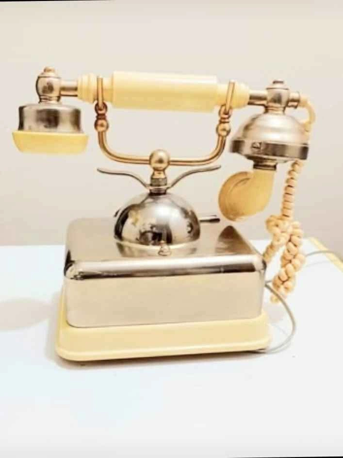 A vintage 1970's, Collectible, Nostalgic Rotary Telephone, French Continental or Victorian-era Styled Model. Classic design with a Rotary Dial, a handset with a coiled cord, and ornate metal and plastic components, in Brass Finish. Decorative, Stunning Centerpiece. Very Good Condition, no chips or cracks. Please check out my other unique items!