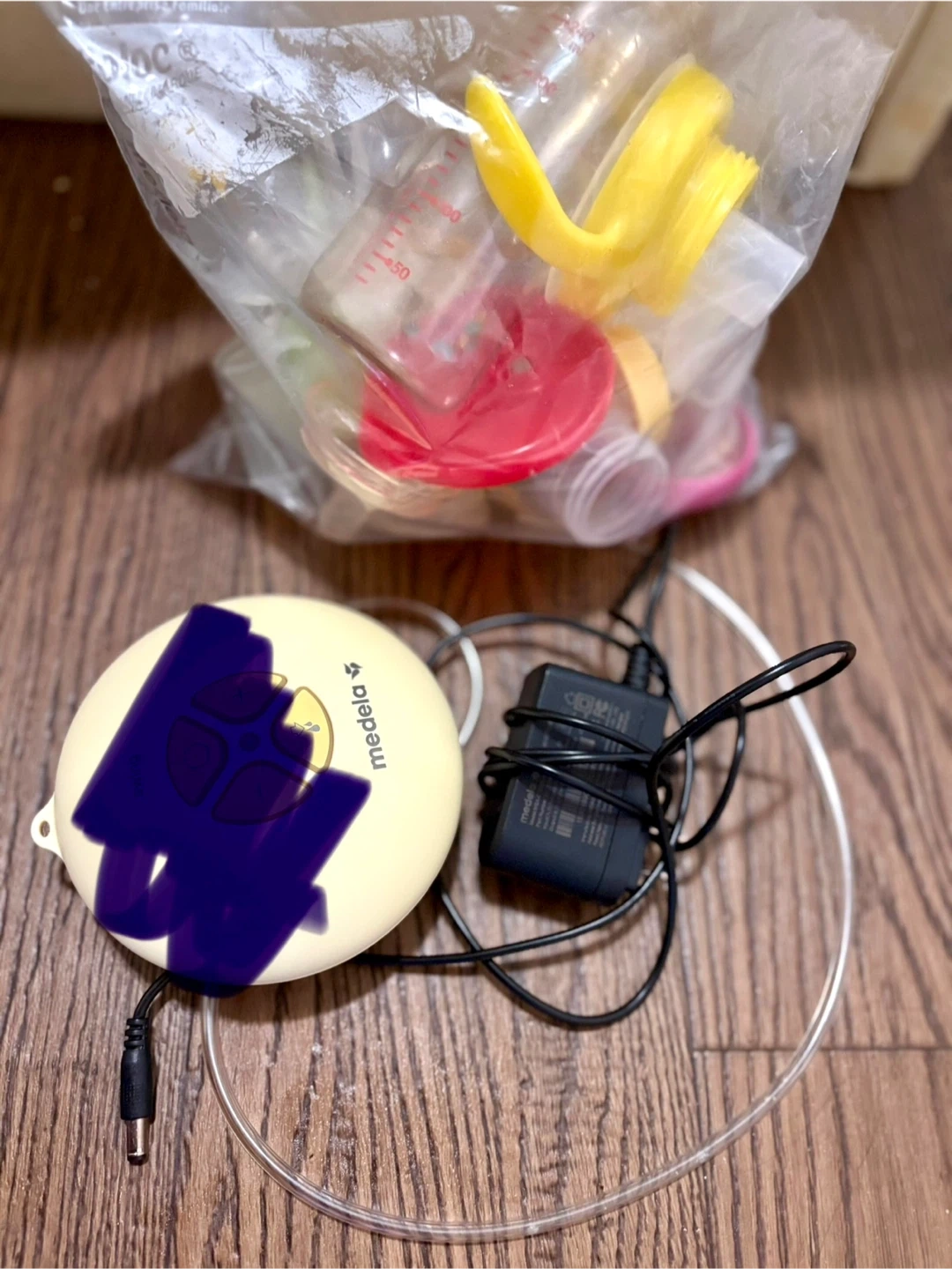 Selling a Medela breast pump, perfect for new parents! It comes with the pump itself, a power adapter, tubing, and a bag of bottles and accessories. Everything you need to get started is included