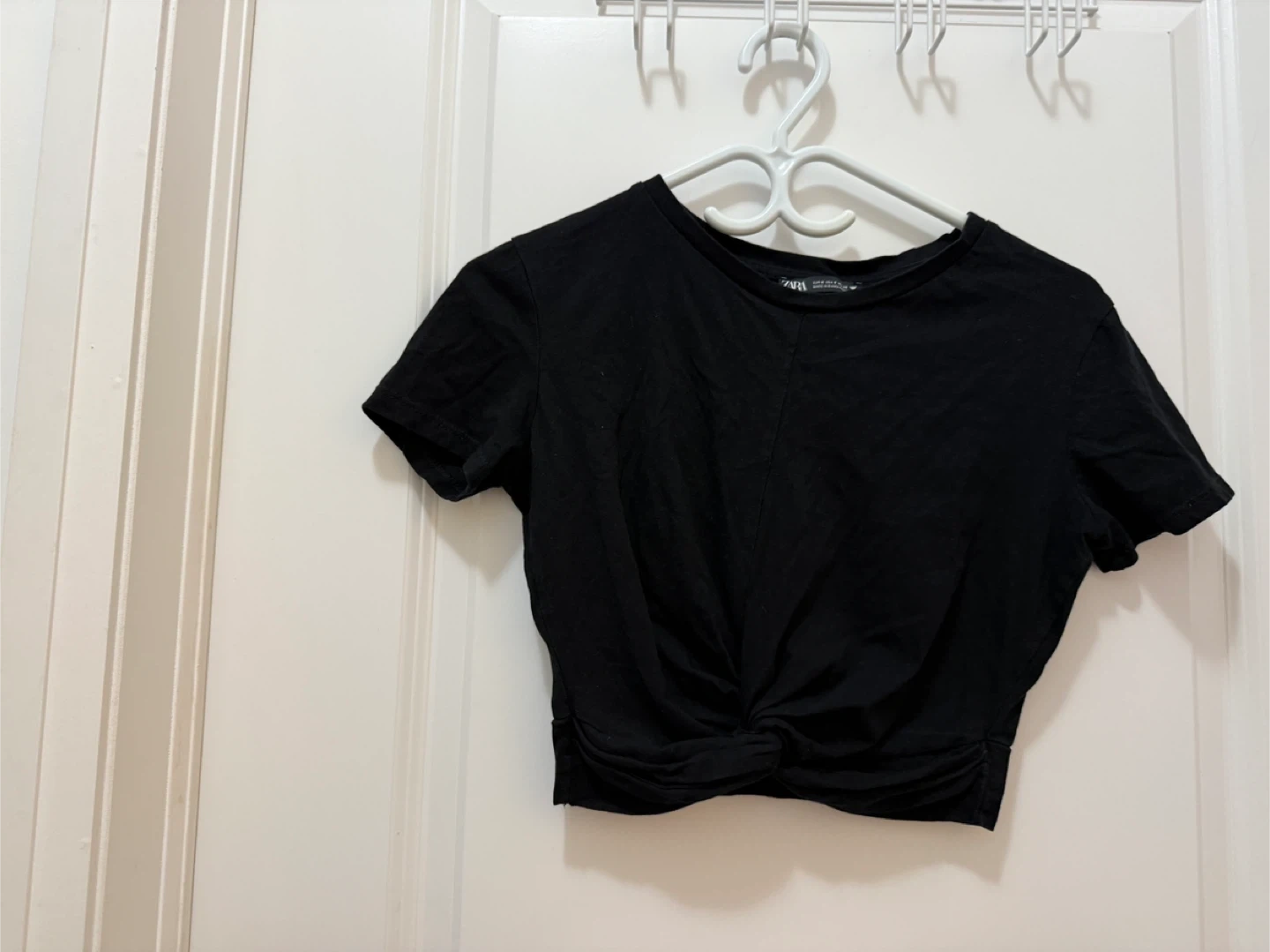 Selling a Zara black t-shirt in size S. It's in great condition and ready for a new home! The material is soft and comfortable, perfect for everyday wear. It has a stylish knot detail at the front. Feel free to message me with any questions!
