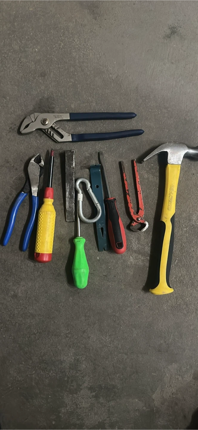 Selling a mixed set of hand tools. Includes pliers, screwdrivers, hammer, and more. Good for various DIY projects!