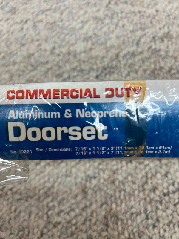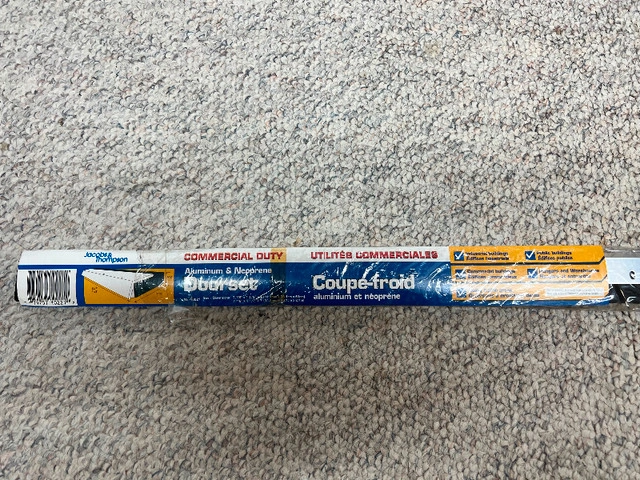 For sale: New industrial grade door draft stopper under door seal. Aluminum and neoprene. Size / Dimensions: 7/16" x 1 1/2" x 3” (11.1mm x38.1cm x 91cm). Door Draft Stopper Under Door Seal for Exterior/Interior Doors, Door Sweep Strip Under Door Draft Blocker, Soundproof Door Bottom Weather Stripping. TOUGH AND DURABLE MATERIAL- this door sweep features durability and flexibility. In addition, the draft stopper is non-toxic and odorless, extra strong and can be stuck firmly for long lasting use. WIDE APPLICATION- Dustproof, soundproof, windproof, this door bottom seal can stop the hot and cold air cross and keep your home away from bugs and dust. Besides, The under door draft blocker features great water resistance and adhesion, great for bathrooms, laundry rooms, and anywhere you might need it. EASY INSTALLATION- measure and cut to your desire length and install.