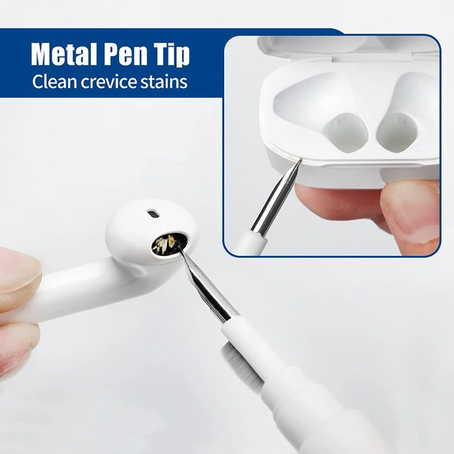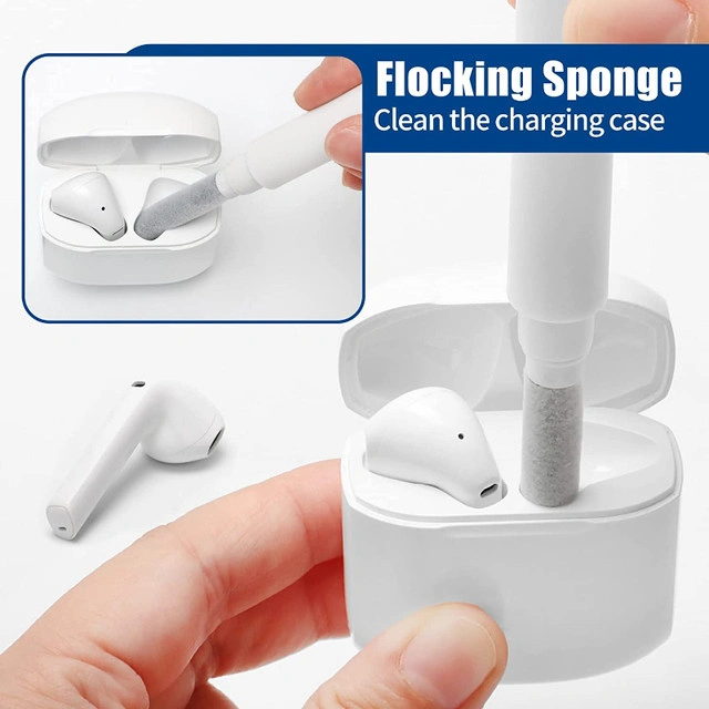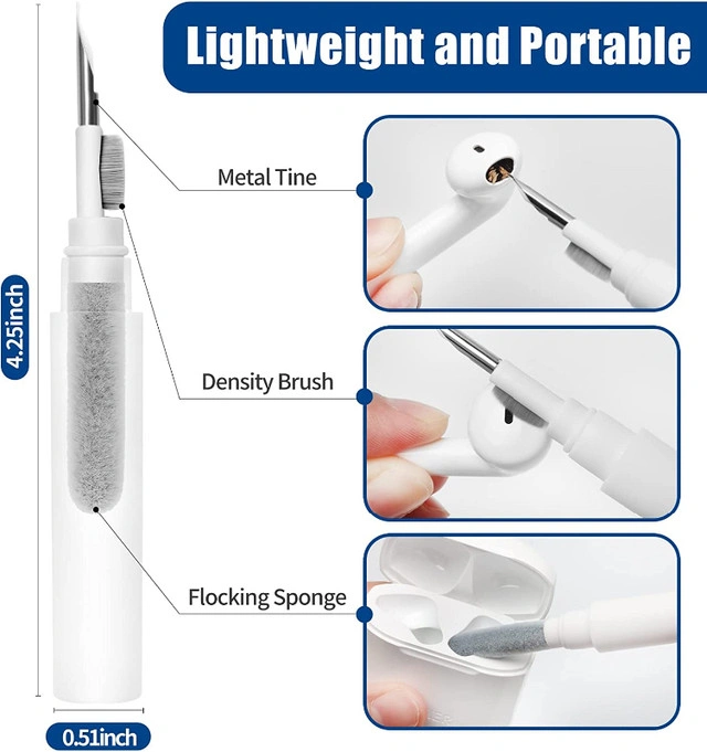 Brand new multi-purpose cleaning tool for smartphones and earphones, great for deep cleaning iPhone Earpods. It's a 3-in-1 kit with a flocking sponge, soft brush, and metal pen tip to easily clean dust and stubborn dirt, making your headphones like new. Features a simple up & down button to switch cleaning tools. Also great for cleaning computers, keyboards, phones, and cameras. Portable, lightweight, and easy to carry. Weight: 0.4oz; Length: 3.95in; Diameter: 0.53in. Let me know if you're interested!