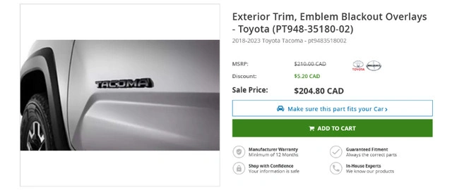 For sale brand new OEM Toyota Exterior Emblem Blackout Overlay Badges. Have some extra from my kit, $10 for each badge. The kit retail over $200+tax. V6 badge sold out. _Molded from tough and durable black ABS plastic _Tested against harsh UV exposure to resist fading _Engineered to precisely fit over existing badges, making it easy to customize in minutes _Designed to fit permanently over existing chrome badge _Easy to install-simply remove tape liner and apply over clean badges _BUILT TO LAST : lettering was made with 3D High Quality ABS Plastic & high quality adhesive tape. _SIMPLE MAINTENANCE: The 3D raised plastic Blackout Emblem & Overlay Kit letters is very easily clean with soft cloth, soap and warm water. _APPLICATION: This is a Toyota overlay kit made to install on top of your emblem decal.