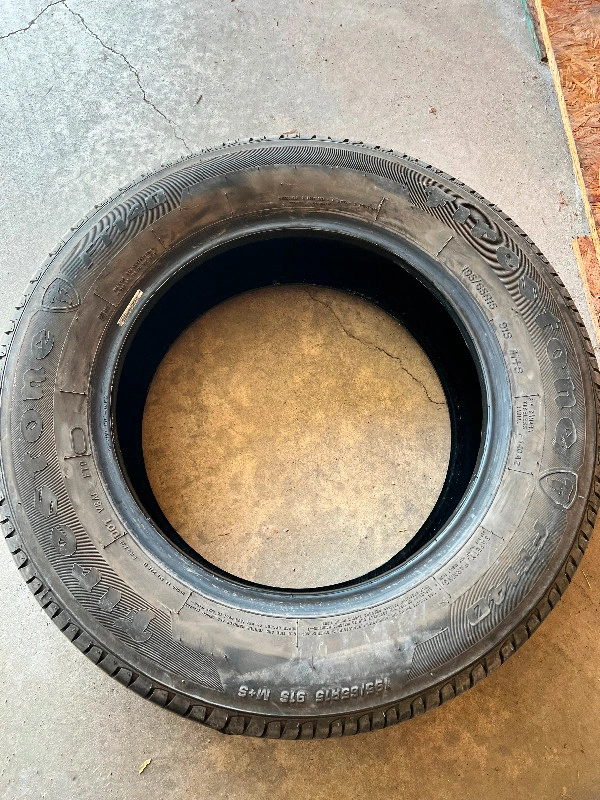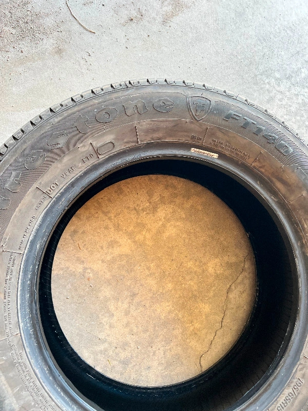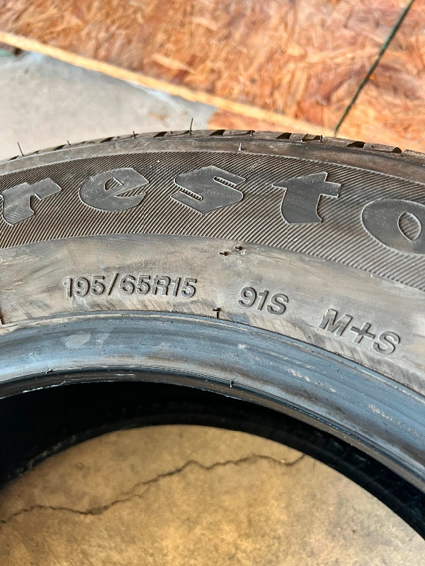 For sale Good Condition 1 Tire Firestone FT140 - 195/65/15 91S. Came off Toyota Corolla. Tread on tire 9/32" (85%). Tire had 1 plug. No leak no damage.