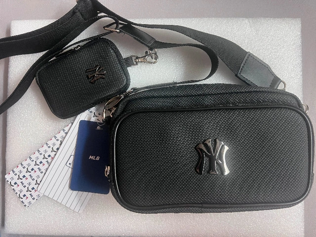 For sale brand new with Tag Unisex New York Yankees Black Crossbody Bag cross shoulder bag with mini pouch (for keys, earphones, accessories, etc.. ). Got as gift, not my style so up for sale. 1 main storage, 1 hidden side storage, 1 front storage. Black NY emblem logo at front and MLB logo at back. Brand - MLB MODEL - New York Yankees crossbody bag with mini accessories pouch. Model Code - 32 CPD5641-1 Main bag size - H: 5" x L: 8" x W: 2” Accessories pouch size: 3” x 4” Package : Crossbody Bag, Mini pouch Condition: New Bag , MLB original Tag, MLB Hidden tag.