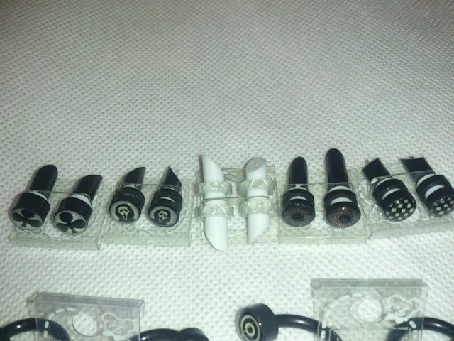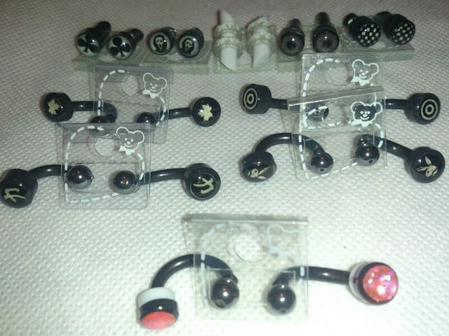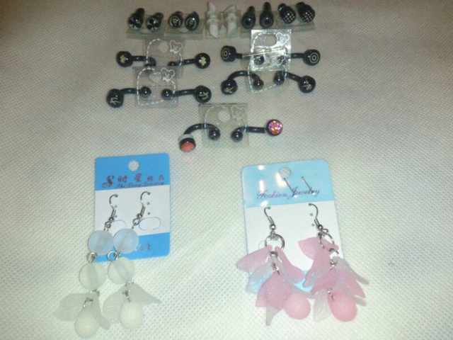 For sale brand new in package Spike, Diamond, Hook earrings. High quality plastic with gorgeous design for men and women. $1 each pair. Size: Medium (8-10). Let me know if you're interested!