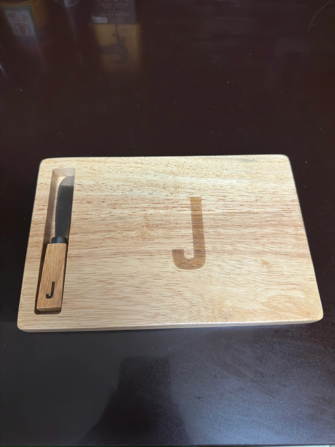 Selling a cute wooden cheese board with a matching knife! It has the letter 'J' engraved on both the board and the knife handle. Perfect for serving cheese and crackers at your next get-together!