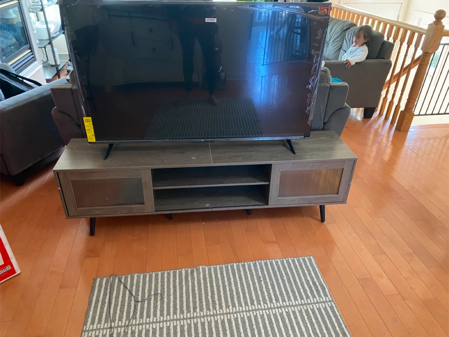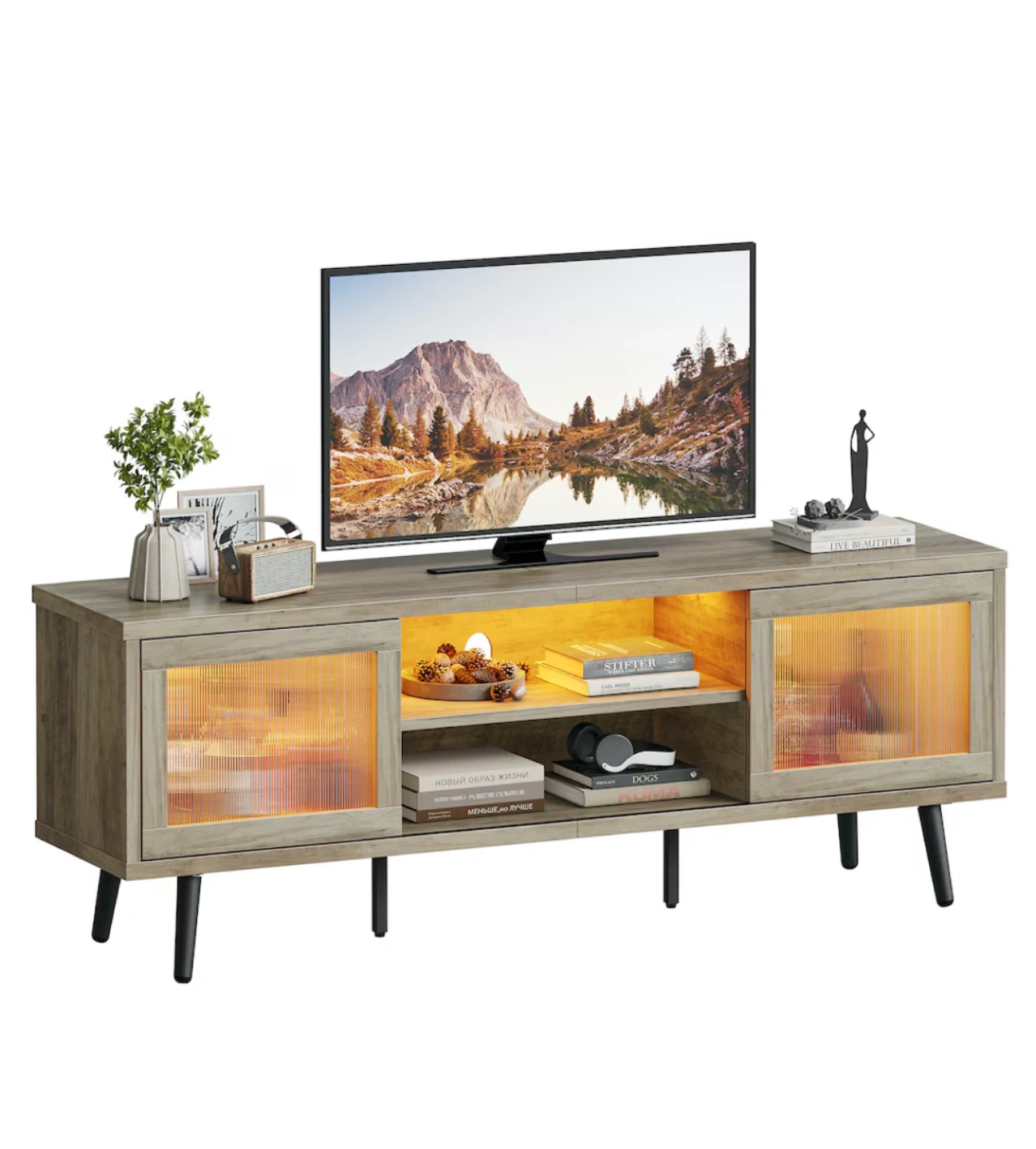 Selling a stylish grey TV stand that would look great in any living room! It features LED lighting to add a cozy ambiance while you watch your favourite shows. The stand has a sleek design and provides ample storage space for your media devices and accessories. It's in great condition and ready for a new home!
