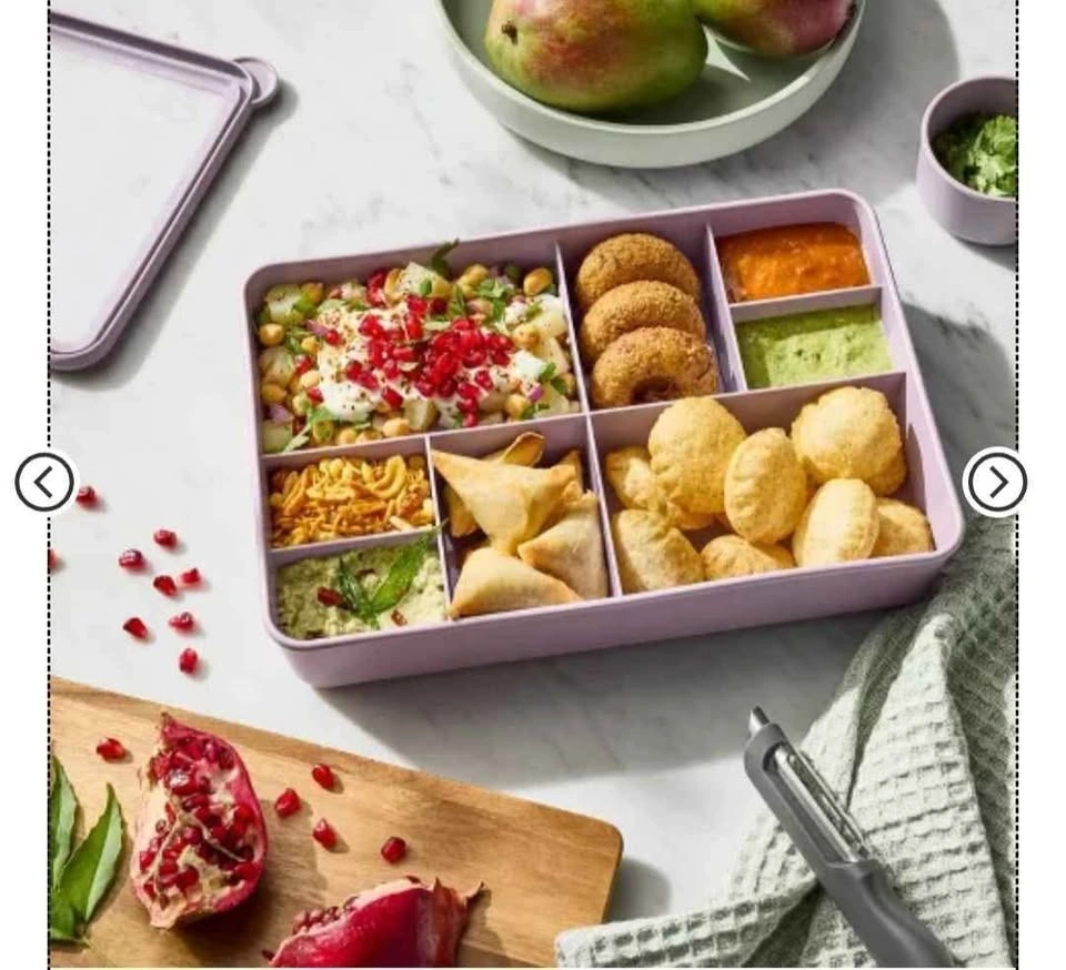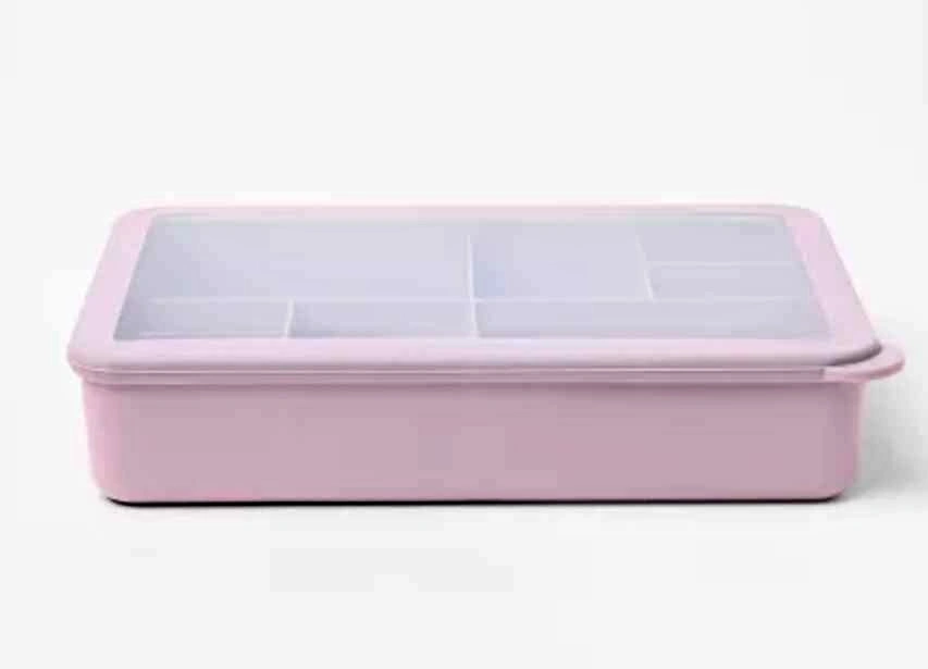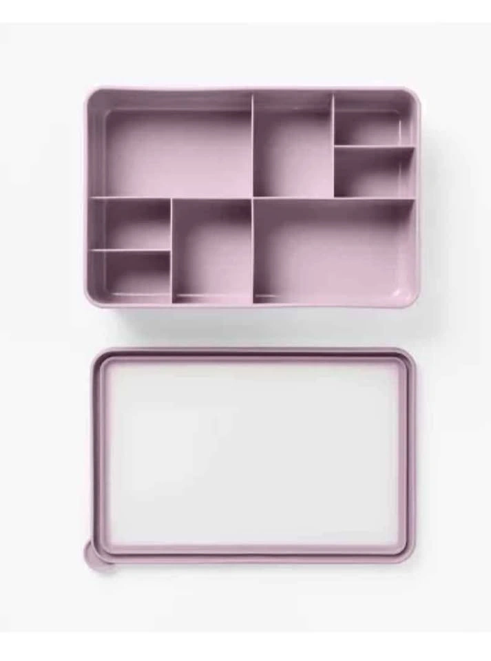 Large Snack Boxes Bento Lavender, Figmint. $15 each. 4 available. Dimensions (Overall): 2.5 Inches (H) x 8 Inches (W) x 12 Inches (D). Weight: 1.63 Pounds. Features: BPA-Free. Lid Material: Polypropylene, TPE (Thermoplastic Elastomer). Capacity (Volume): 2.8 Quart. Container Material: 50% Recycled PET (Polyethylene Terephthalate). Includes: Rectangular Containers, Lid. Care & Cleaning: Microwave-Safe for Reheating Only, Microwave-Safe Without Lid, Dishwasher-Safe.