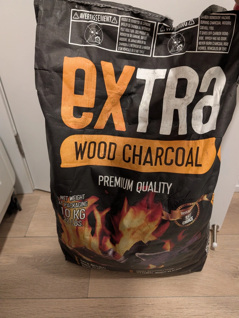 Selling a bag of Extra Wood Charcoal, perfect for your next BBQ! The bag contains 10 KG or 22 LBS of premium quality, 100% natural wood charcoal. It's Restaurant 1st Choice! Extra big bag from costco! I had hoped to do more grilling this summer, only used a handful of coals.