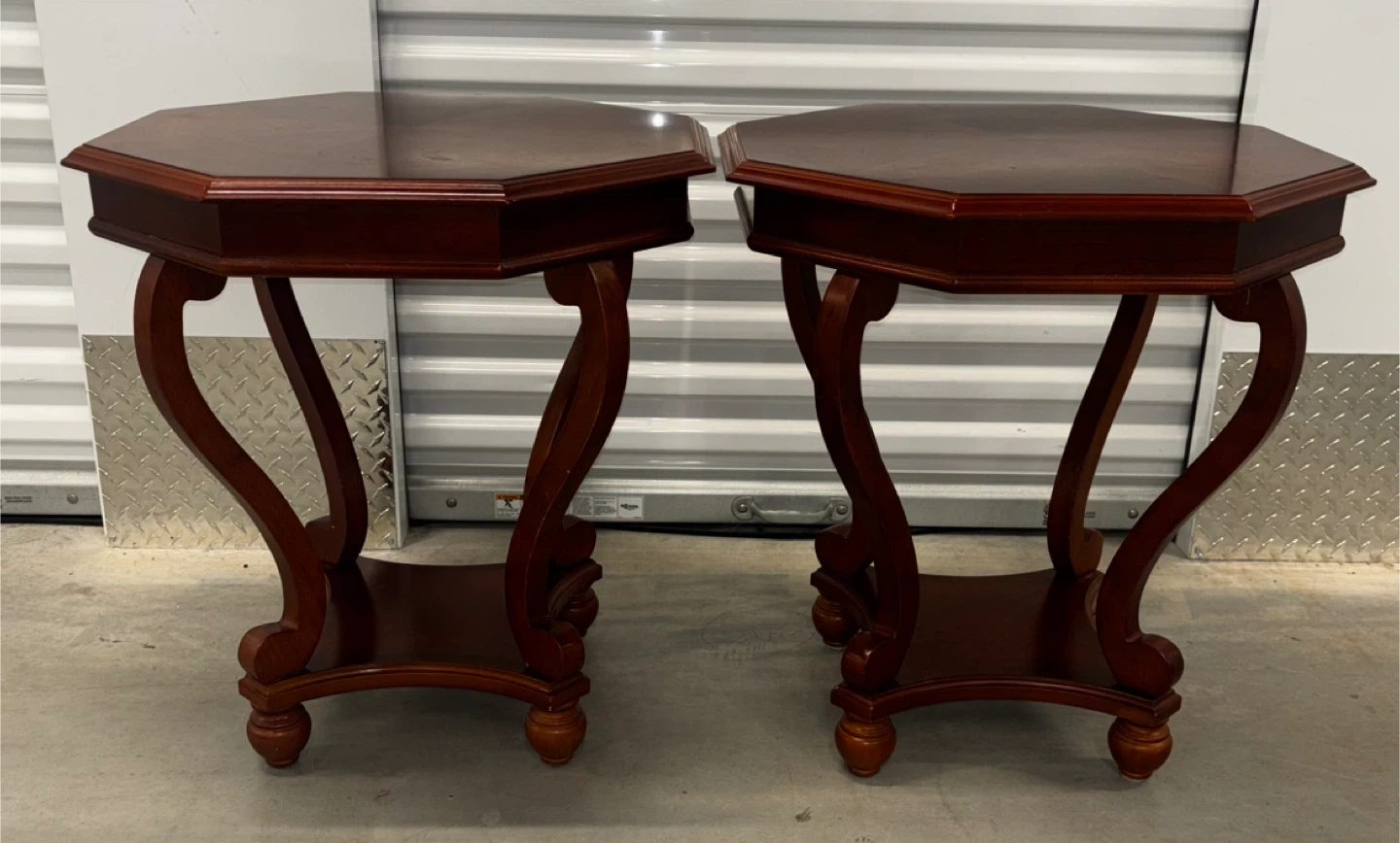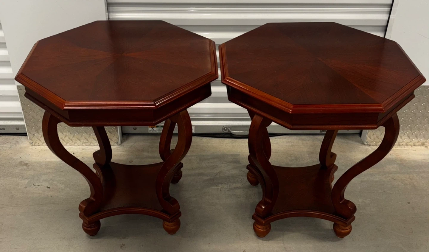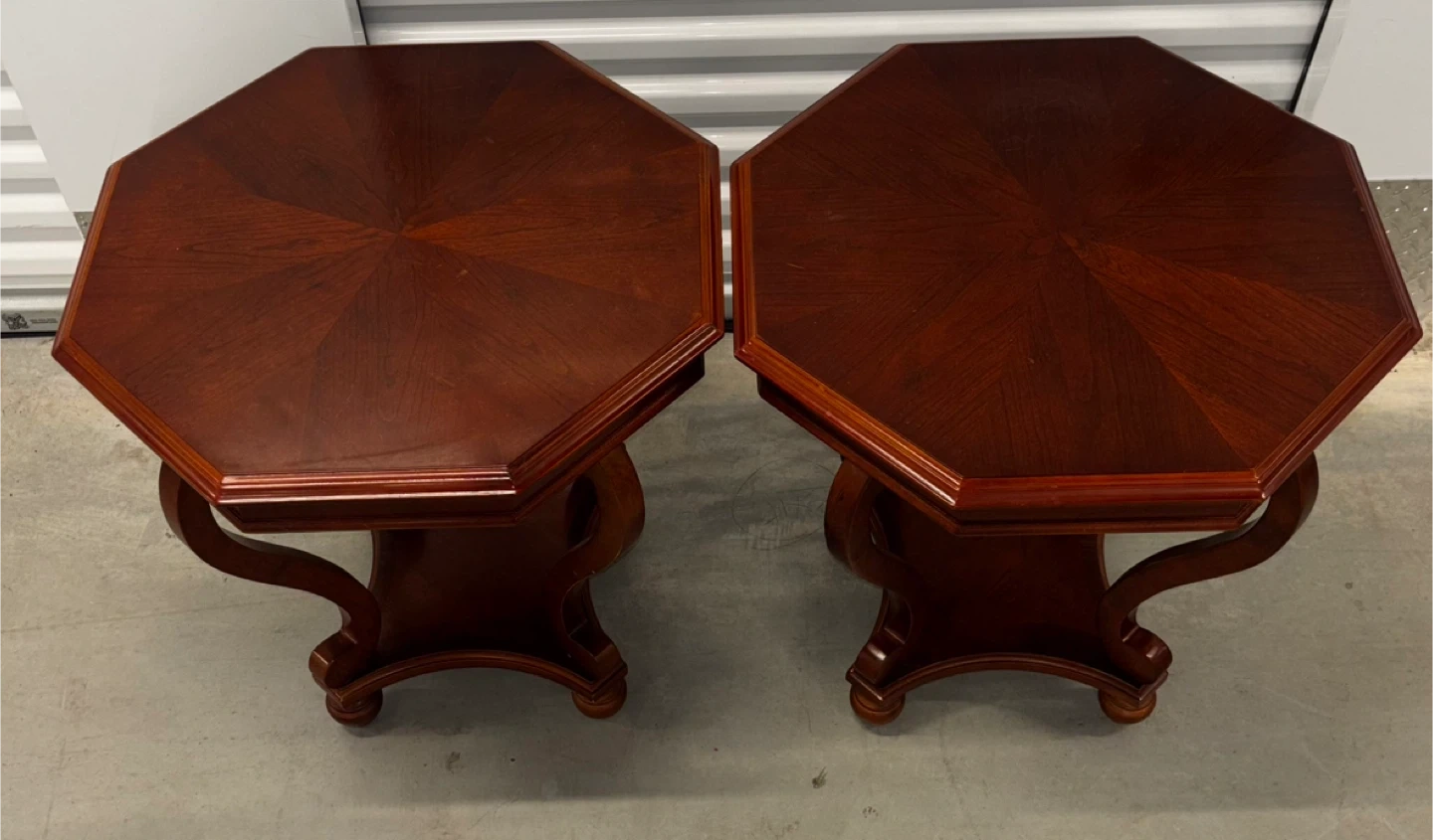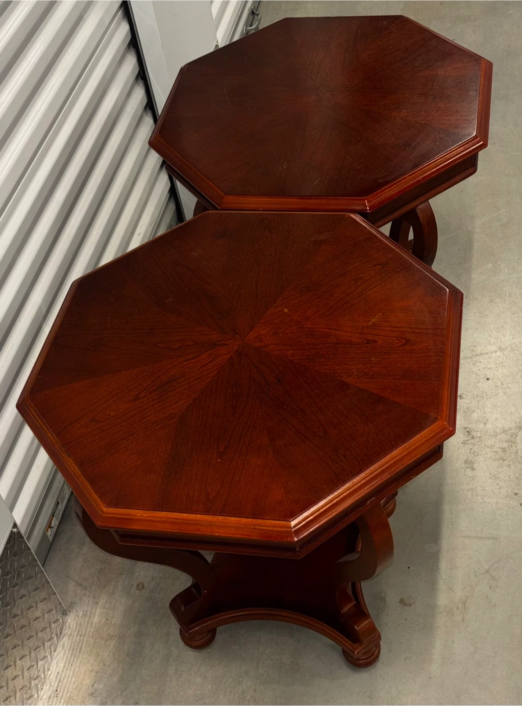✅Matching set of 2 ✅Octagon tabletop with rich wood finish ✅Curved legs + sturdy base ✅Multi-use: end tables, plant stands, accent furniture Measurements: 2ft wide 2 ft length 25” height 📍 Pickup in Oshawa 🚚 Delivery available (fee based on location) 💵 Cash or EMT accepted 🤝 Open to offers 🚫 No holds without deposit
