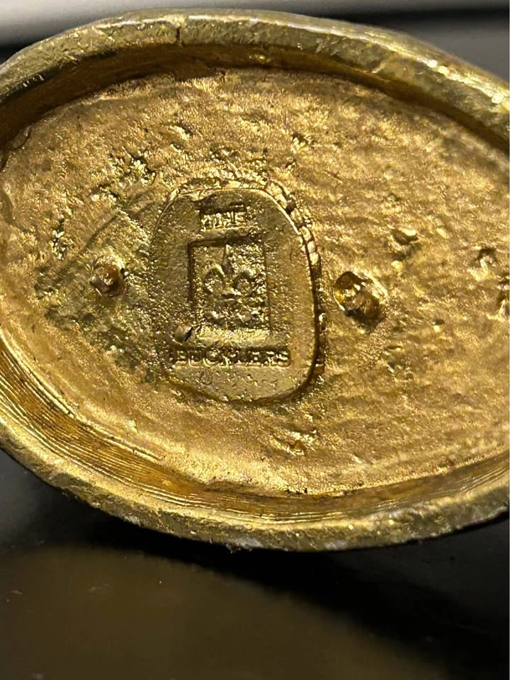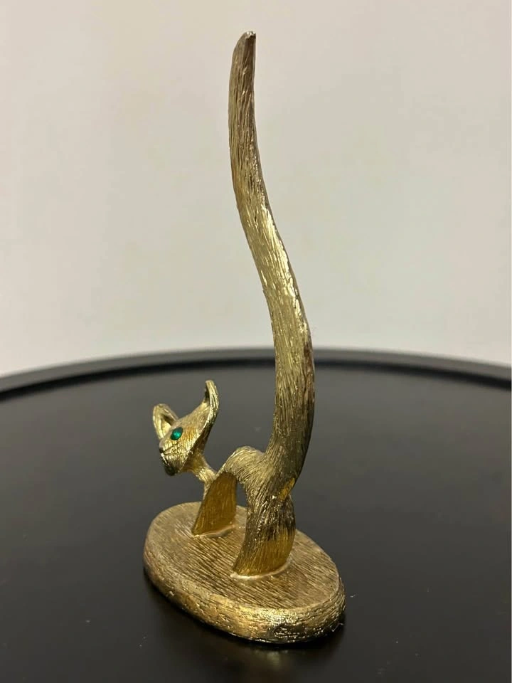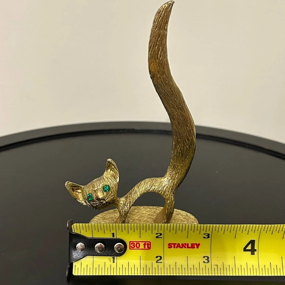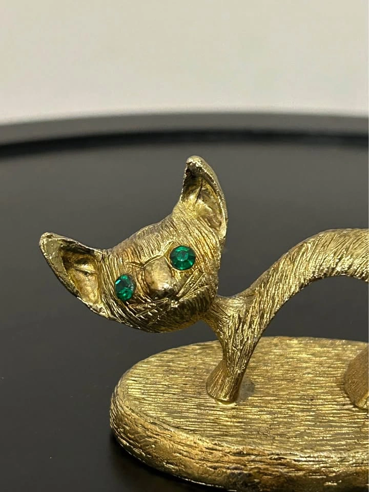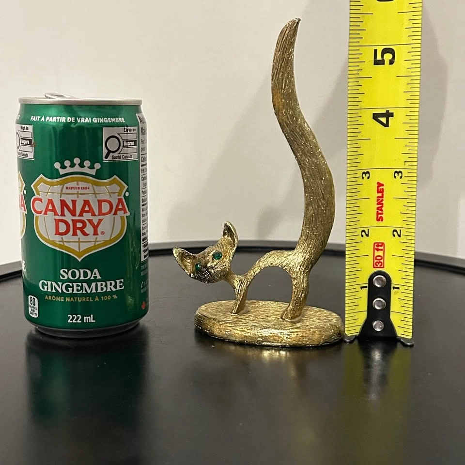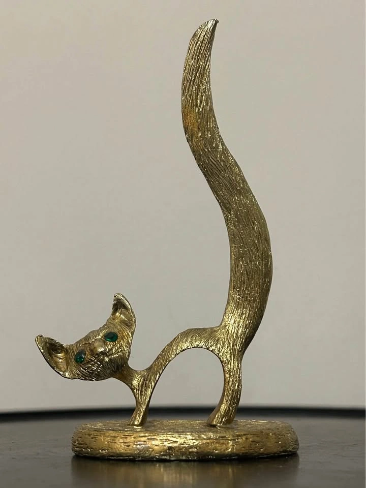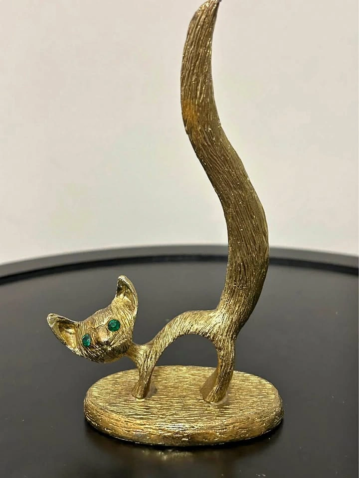 Charming vintage 1950’s brass kitty cat ring holder by The Bucklers. A whimsical Mid-Century vanity figurine featuring a stylized cat with emerald-green rhinestone eyes and an upright tail designed to hold rings. Made of textured brass with the original Bucklers hallmark on the base. • Maker: The Bucklers • Era: 1950’s Mid-Century Modern • Material: Brass with rhinestone eyes • Function: Ring holder / vanity cat figurine • Condition: Vintage – shows light age-related wear, adds to its authentic patina (see photos). A playful and collectible piece of Mid-Century vanity décor. Pick up: Seton area, Calgary. Payment: e-transfers and cash. See also my other lots. Open to your questions and suggestions. If necessary, I provide additional photos. These are not new things, so please look carefully at the photos and videos. Sizes are submitted on request and also using a tape measure in the photo.