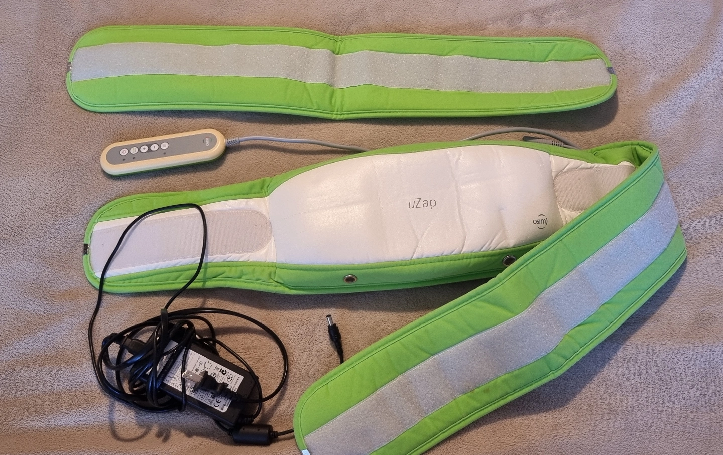 Selling an Osmo uZap oscillating massage belt. It has a heat option. It comes with the remote control, power adapter, and extension belt. It also comes with a carrying bag for easy storage and transport