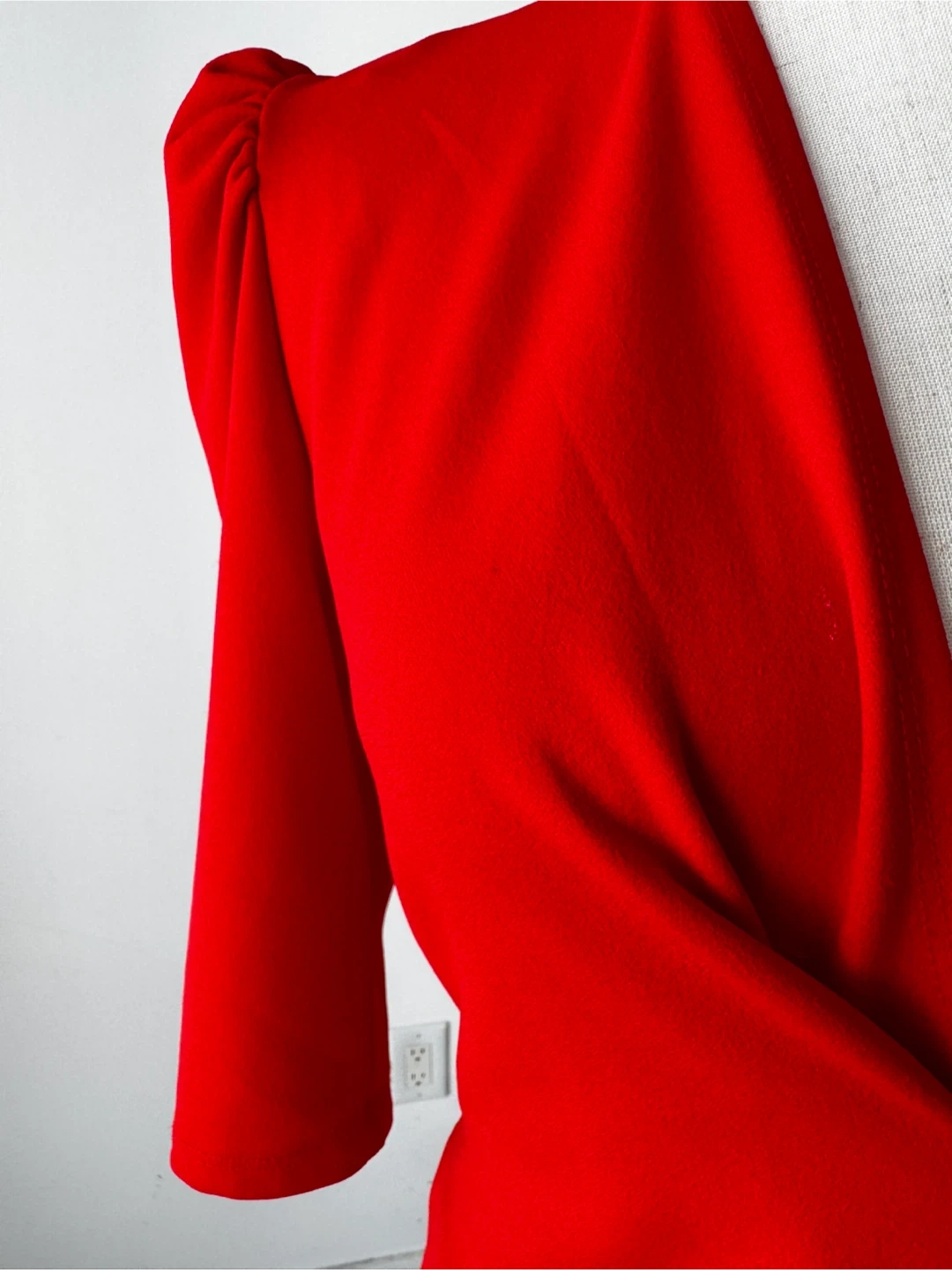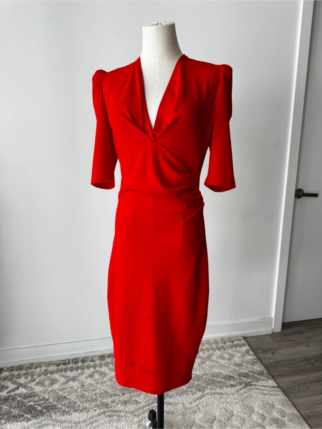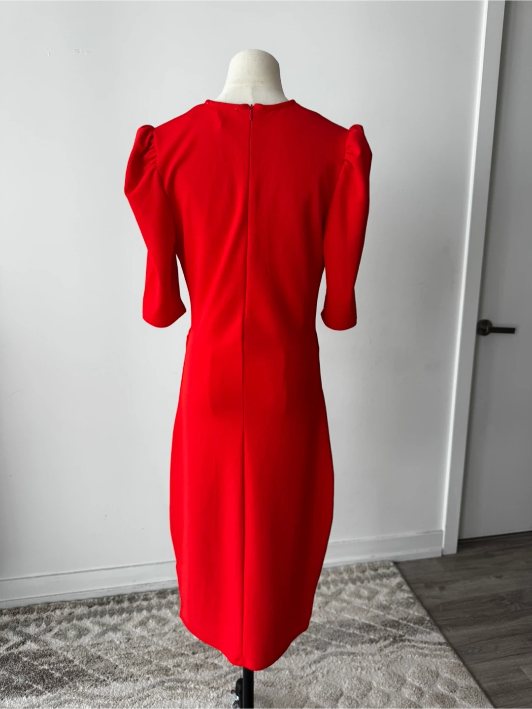 A lovely red dress with short sleeves. It's in great condition and ready for a new home! It would be perfect for a night out or any special occasion. Feel free to message me with any questions!