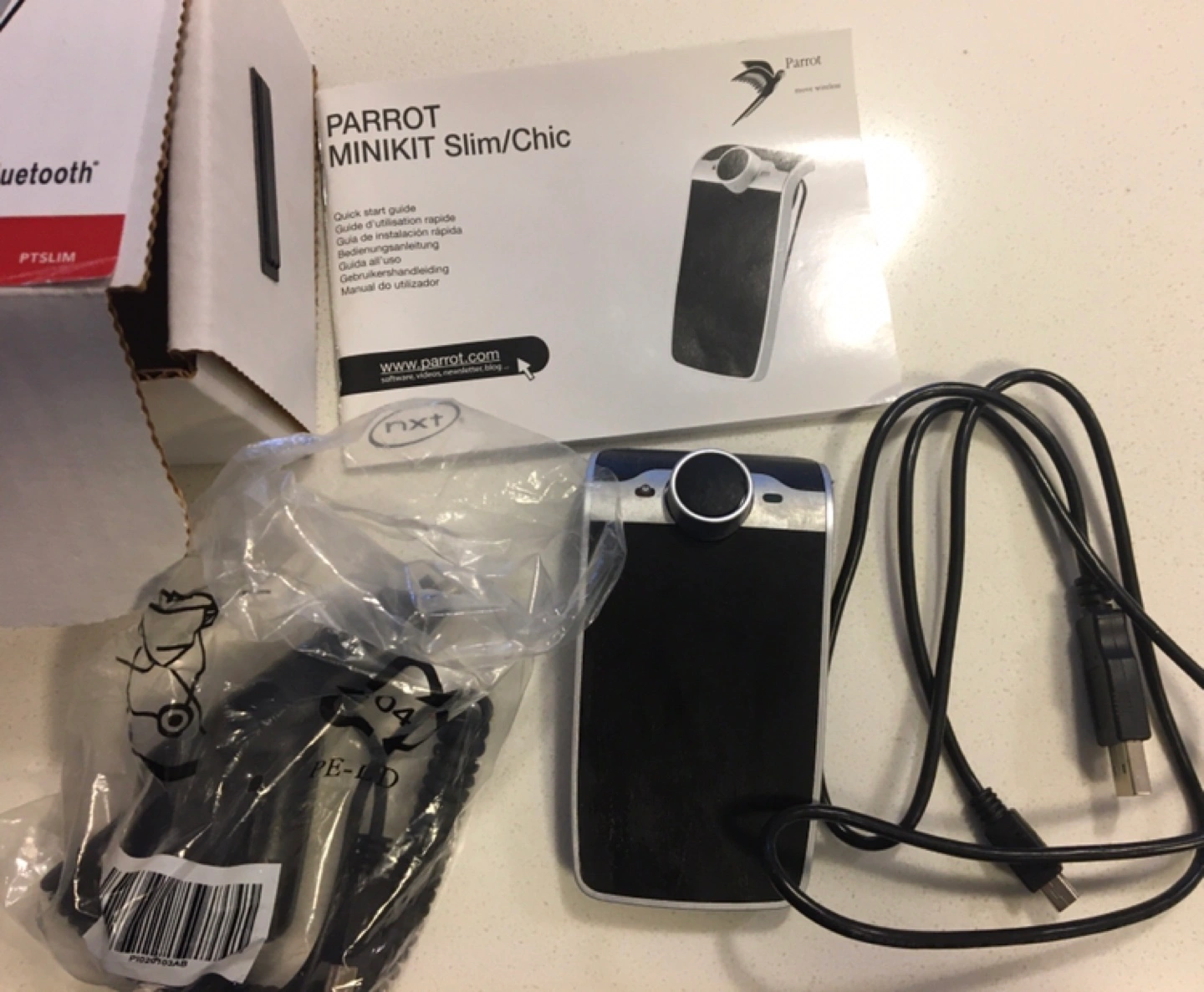 I have never used it so pricing it just for parts. The Parrot MINIKIT Slim is an ultralight and stylish Bluetooth hands-free car kit that easily clips to your sun visor for convenient call management while driving. Here are some specifications: * Bluetooth hands-free car kit * Ultralight and slim design * Clips to sun visor * Easy to use Bluetooth rubber is sticky due to age - again selling as is for parts potentially.