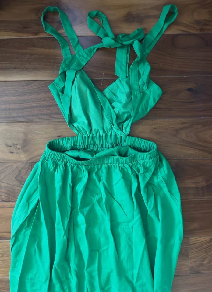 NEW Popvil Cut Out Sleeveless V Neck Midi Dress Size L (see size chart in pics) Porch PU South Arm