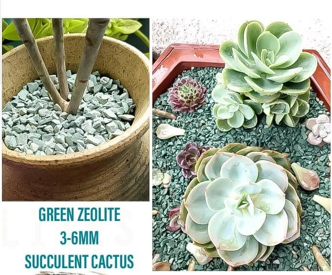 Green Zeolite stone Price: $6/KG Size: 3-6mm Topdressing for miniature terrariums / indoor potted plants. Use as soil mixes or substrates including but not limited to Bonsai, Succulents, Cactus, hydroponics, orchids and citrus plants. Can be used in aquariums. Benefit Water purification (clean water) – Due to its high porosity, it absorbs impurities in water. 2-way regulating effect on water quality, soften hard water. Due to its unique negatively charged honeycomb, and microporous cellular structure, this can attract positively charged contaminants. (i.e., toxins and heavy elements) Slowly release important nutrients such as K, N, and other positive elements to the plants. Strong ability to absorb and retain water, reduces water usage. Reduce harmful bacteria, viruses and fungi.