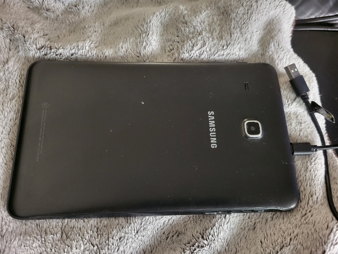 Selling a Samsung Galaxy Tab A 8.0" in black! It comes with a charger. It's in good condition and ready for a new home battery need recharge every 1h if you use it for an hour straight thats 25 bucks , good for a kid Price Firm