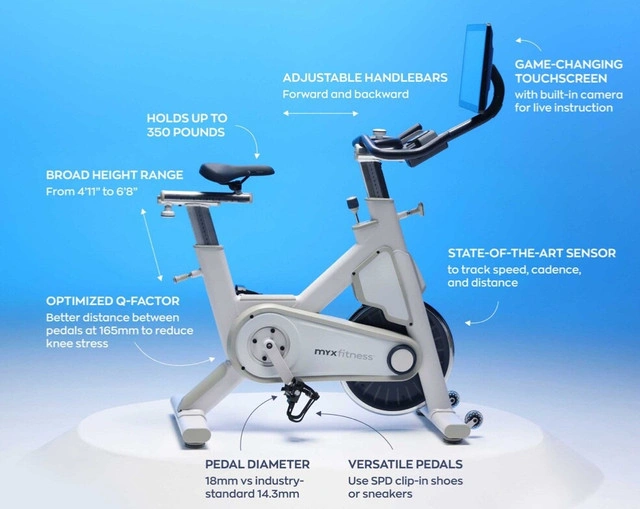 BRAND NEW IN BOX BRAND NEW SEALED BODi Myx Fitness Spin Exercise Bike Commercial GRADE. The picture depicts the unit assembled. Does not come with monitor, but monitor mount is included, any tabled or monitor can be used. Includes Candace Sensor. This bike is a commercial grade spin exercise bike for your home. Excellent Spin Bike. Let me know if you're interested!