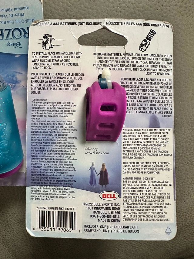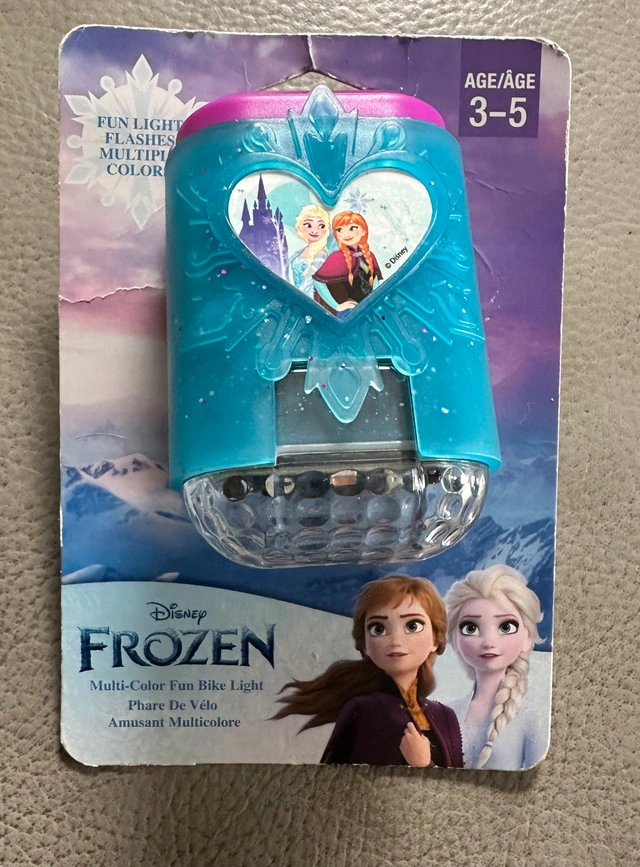 Light up the path for your little one with this new Disney Frozen multi-colour fun bike light. Designed for ages 3-5, this fun light easily attaches to the handlebars, providing colourful illumination for safer rides. * Multi-colour illumination * Easy handlebar attachment * Age: 3-5 years